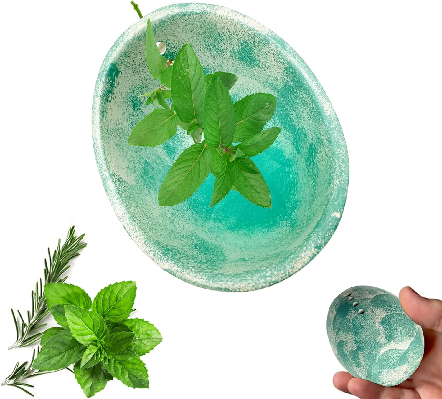 Herb Stripper Bowl, Handmade Ceramic Herb Peeling Bowl, Multiple Hole Sizes for Easy Leaf and Stem Separation, Durable and Dishwasher Safe Herb Stripping Tool for Kitchen Cooking-Green