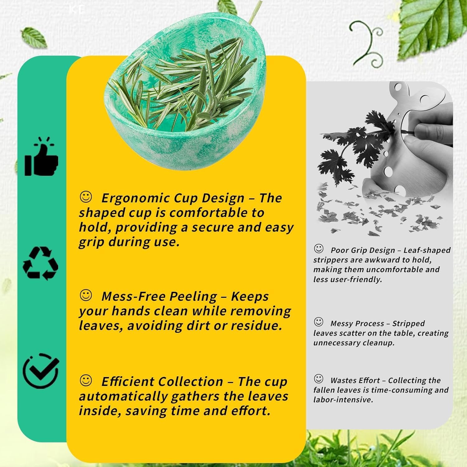 • Improving Kitchen Efficiency: which can easily and quickly remove the leaves of green leafy vegetables and herbs such as kale, coriander, rosemary, etc., saving time and energy and improving kitchen efficiency.