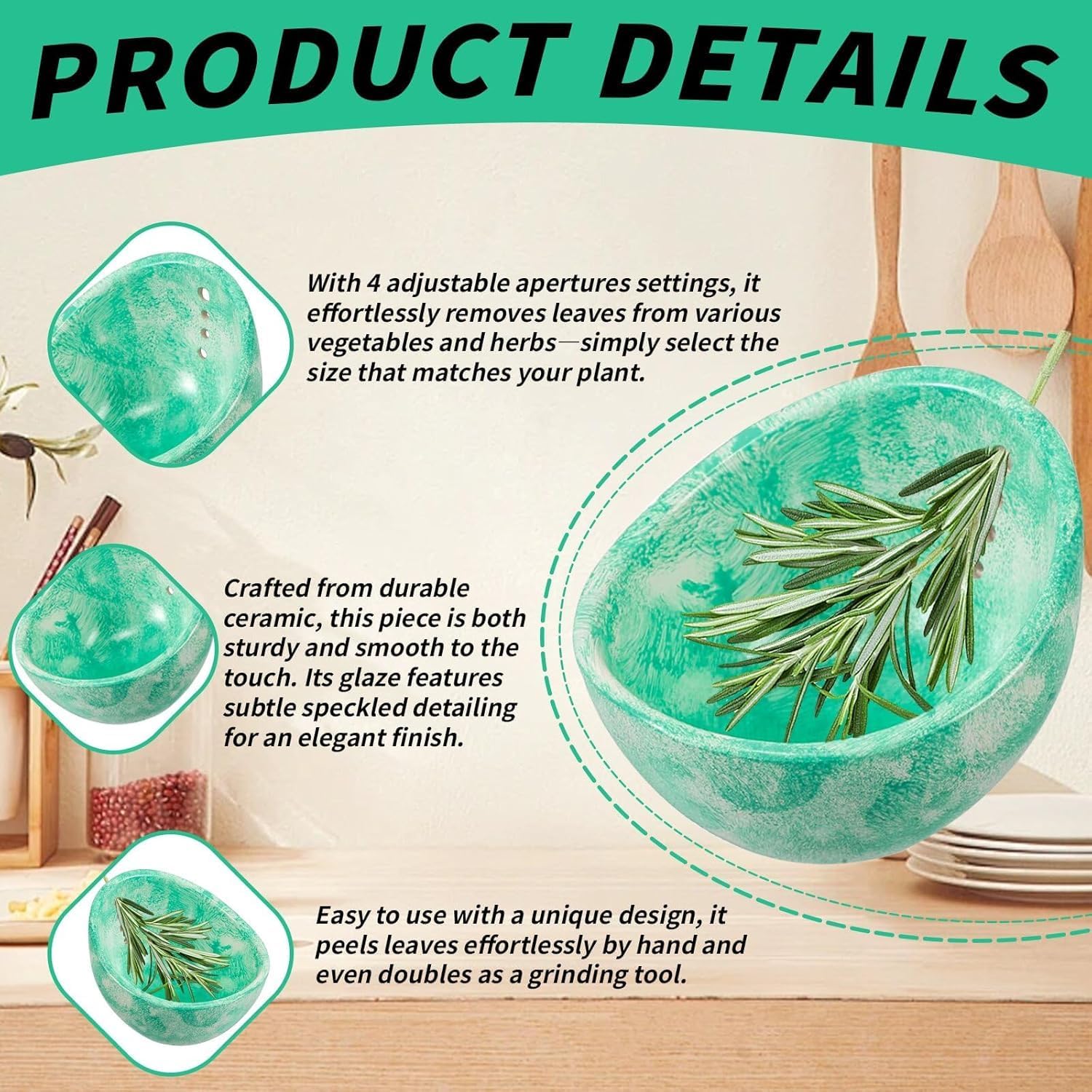 • High-Quality Design: This ceramic herb stripper bowl is exquisite patterns,and also has the function of quickly removing stems and leaves, this herb stripper is built to last, ensuring long-term durability and reliability for daily use in meal prep or cooking.