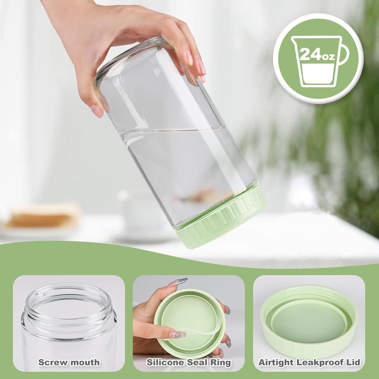 Overnight Oats Containers with Lids, 24oz Glass Jars with Lids 4 pcs, Light Green, Wide Mouth Mason jars for Salad, Yogurt, Snacks, Meal Prep