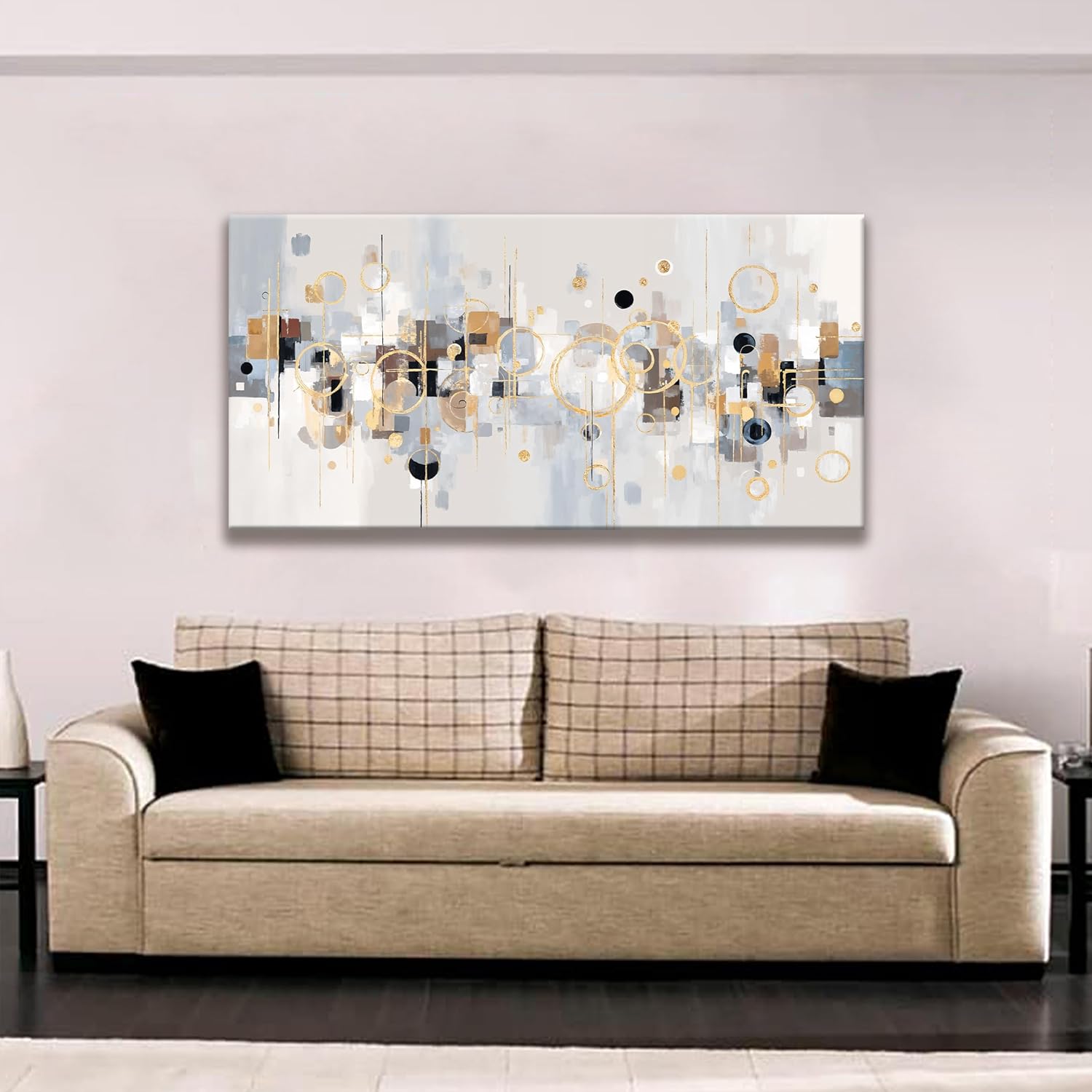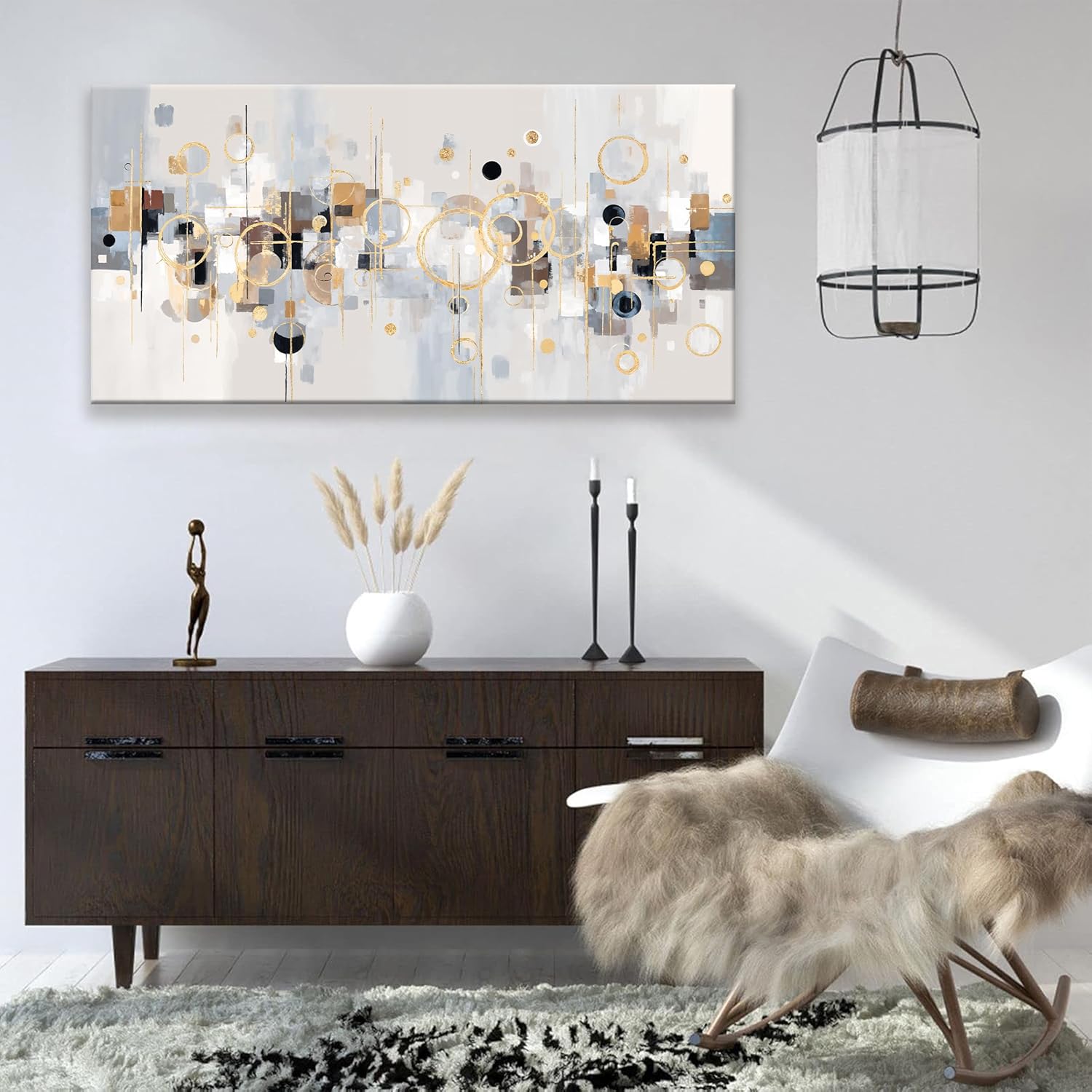 Abstract Gold Circles Grey Wall Art Decor Modern Minimalist Circles Artwork Canvas Wall Art For Bedroom Living Room Kitchen Office Home Wall Decor Ready To Hang 24x48 Inch