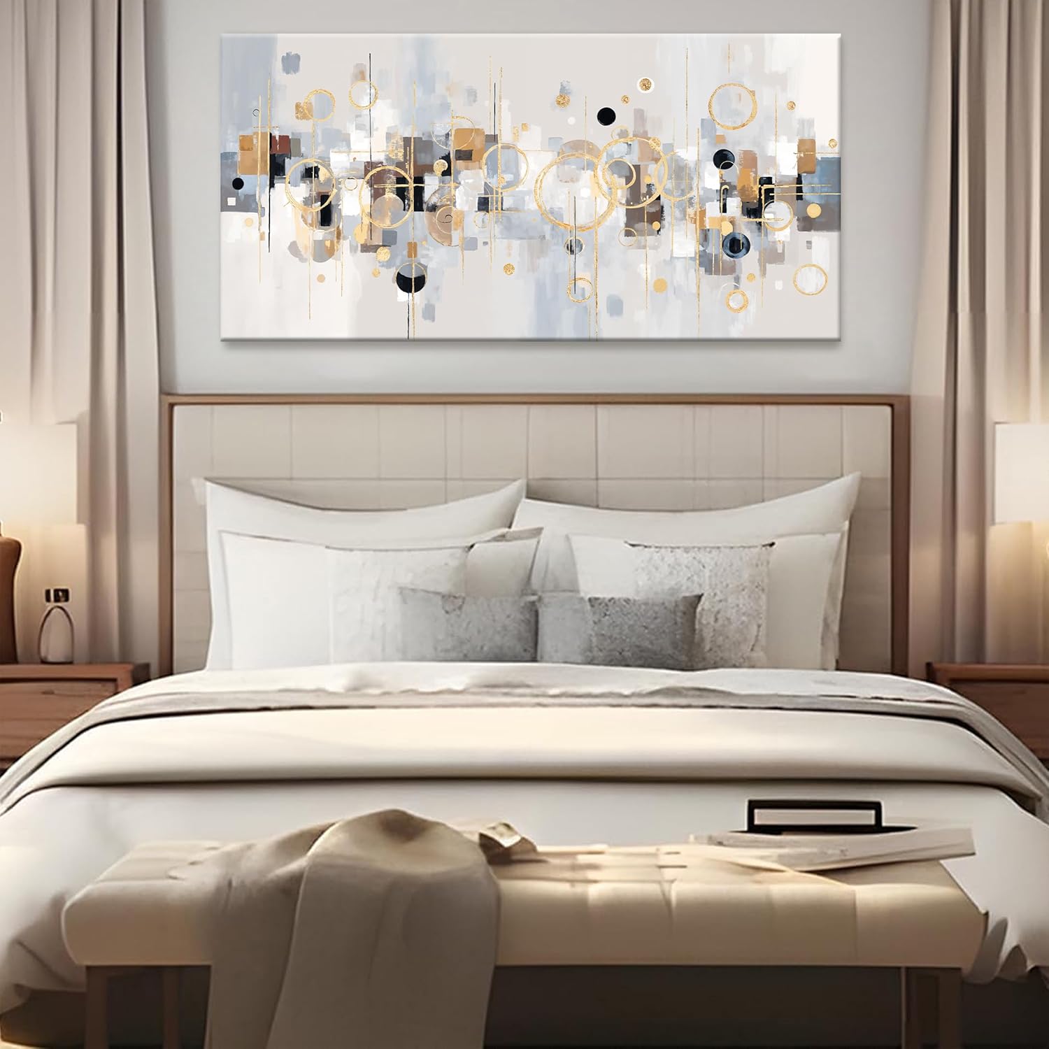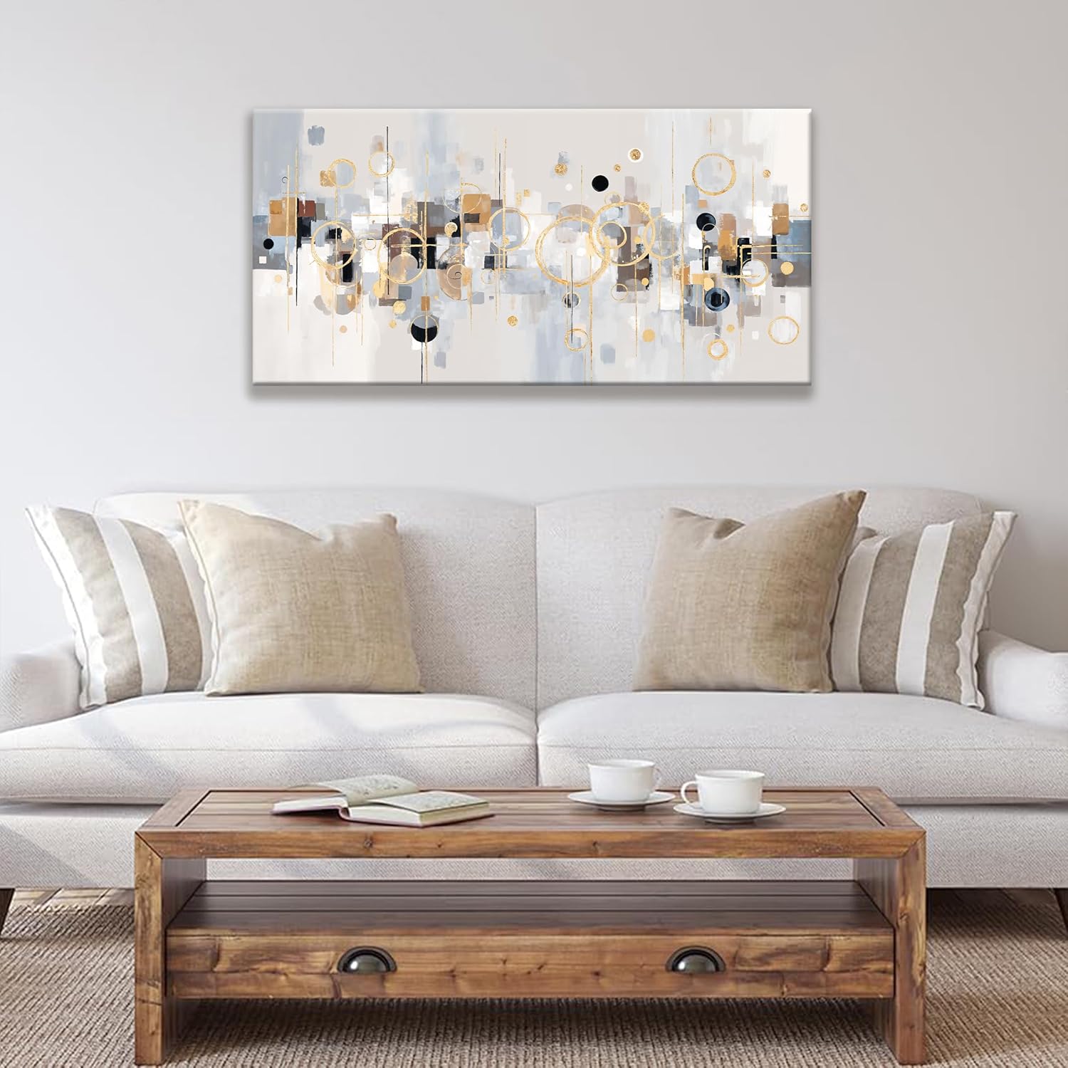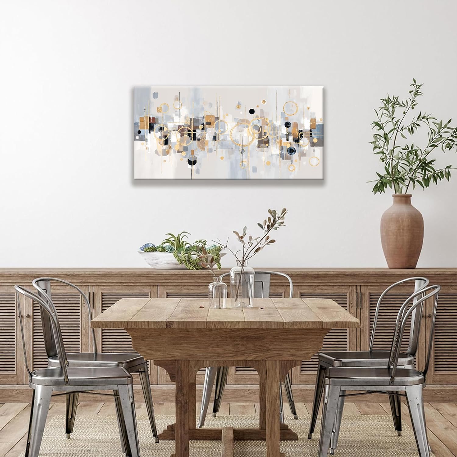 Abstract Wall Art Decor Modern Minimalist Circles Gold Grey Artwork Canvas Wall Art For Bedroom Living Room Kitchen Bathroom Apartment Home Wall Decor 20x40 Inch Ready To Hang
