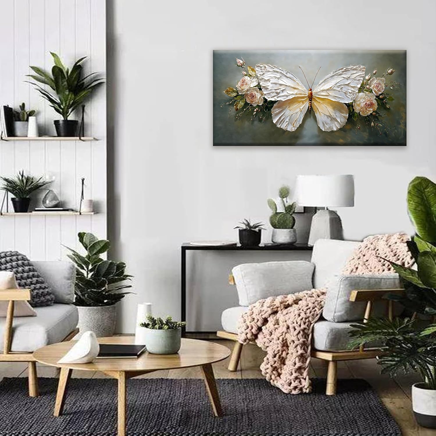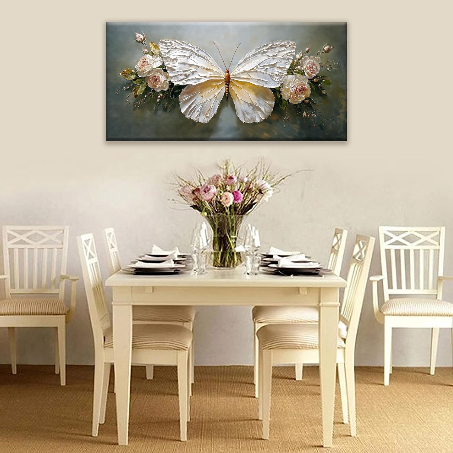 Modern Abstract Artwork White Simple Butterfly And Rose Wall Art Decor Canvas Prints Art Work For Wall Decor For Bedroom Living Room Apartment Kitchen Bathroom Office 20x40 Inch