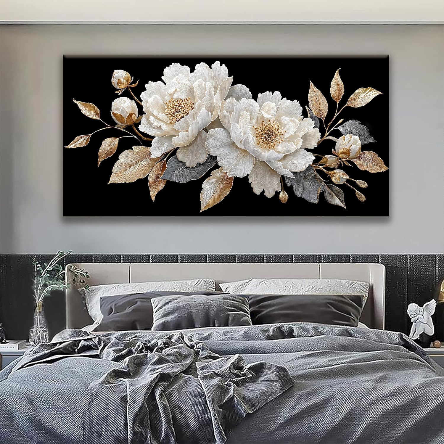 Large Wall Art Living Room Artwork Elegant White Flower Picture Canvas Art Wall Decor For Bedroom Office Kitchen Modern Home Wall Decor 29x58 Inch Ready To Hang
