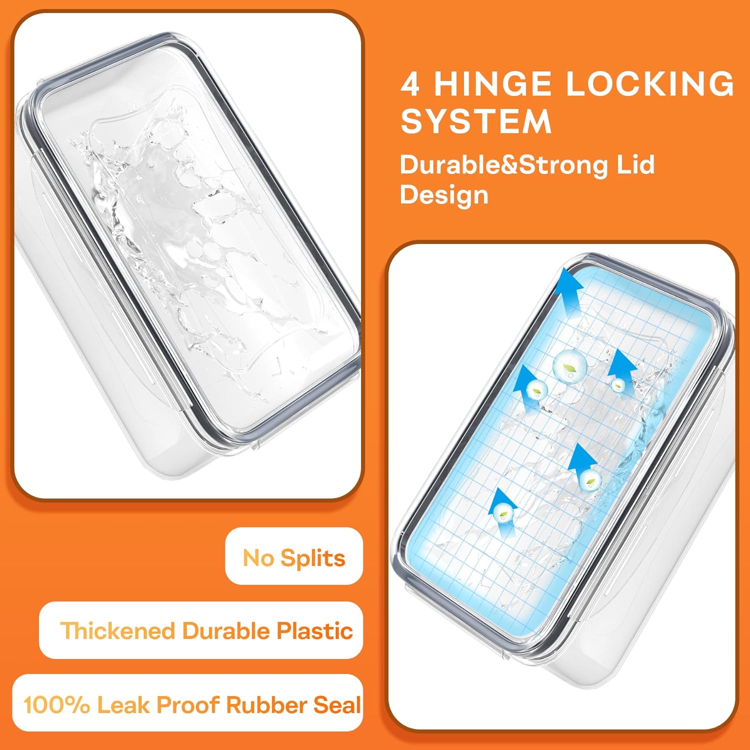 • Upgraded - 100% Leak Proof and Airtight: Storage containers come with removable silicone rings and 4 hinge locking systems that easily be closed by adding little pressure than old version. The use of food containers set can keep your food fresh and tidy by preventing food spillage and leakage of food smell
