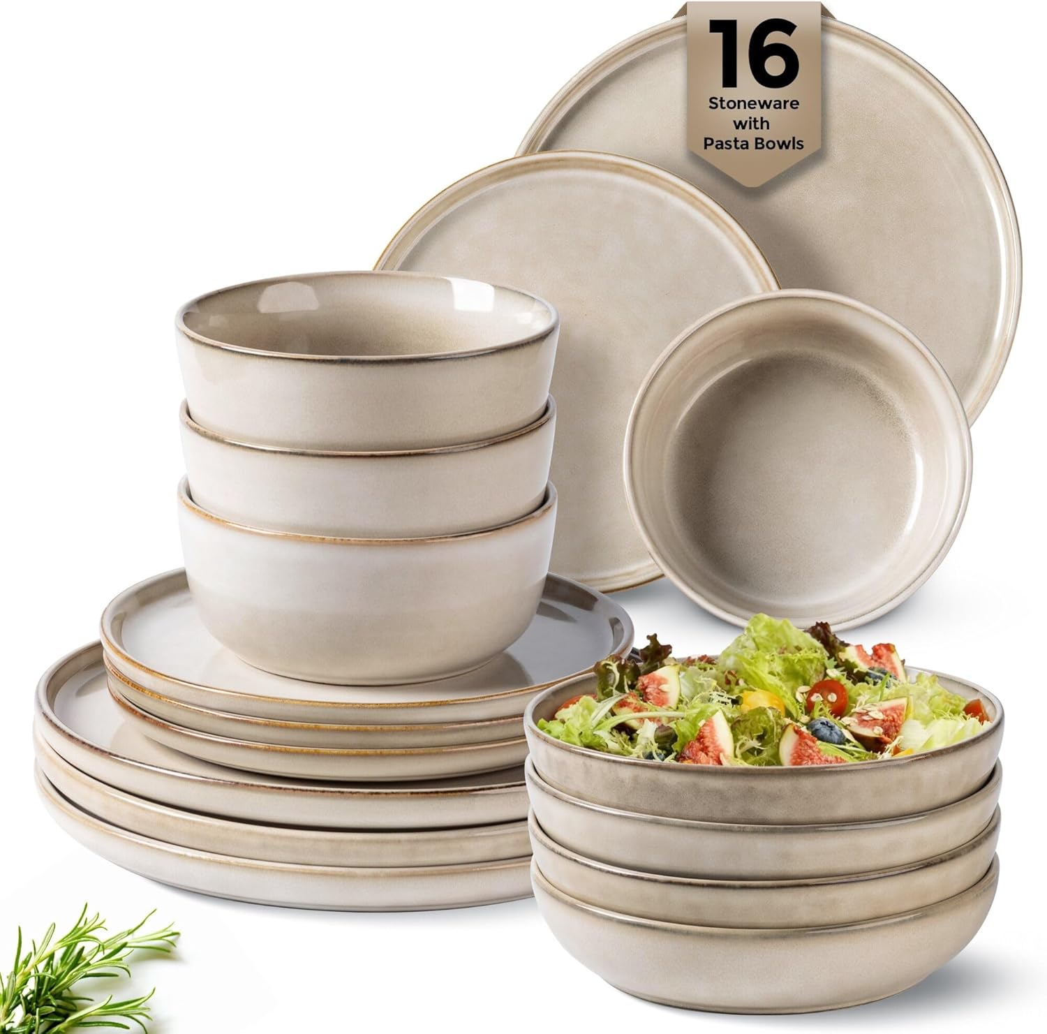 • WHAT’S IN THE BOX: These series 16-piece dinnerware set includes 4 Pcs 10.5” Dinner Plates, 4 Pcs 8” Dessert Plates, 4 Pcs 5.75" cereal bowls, 4 Pcs 8" pasta bowls, making it a great set service for 4