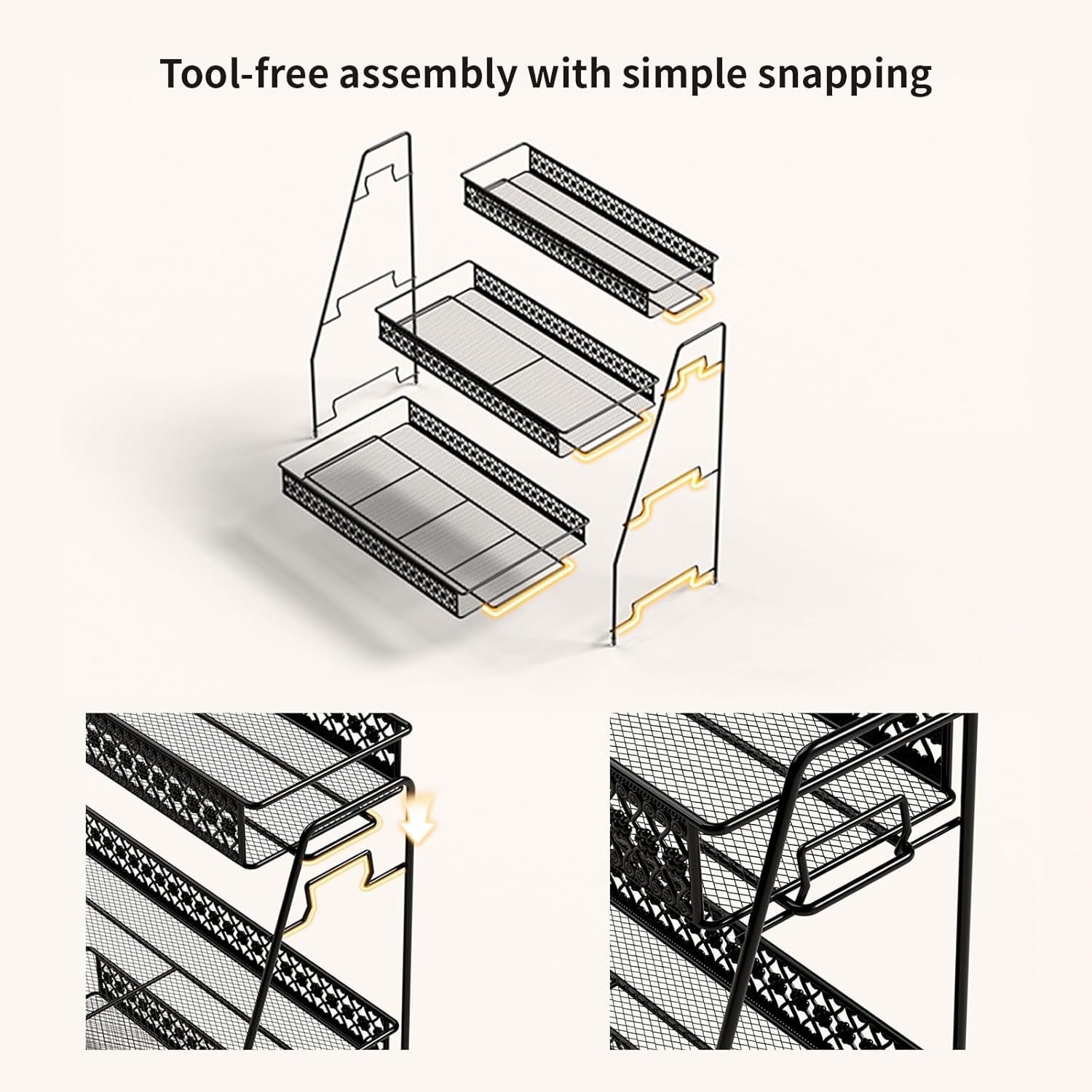 • 【Durable & Water-Resistant】Constructed with sturdy steel and scratch-resistant baked enamel coating, this bathroom counter storage solution performs well in humid environments. Smooth edges ensure safe handling, while the easy-clean surface maintains its appearance for kitchen counter shelf use
