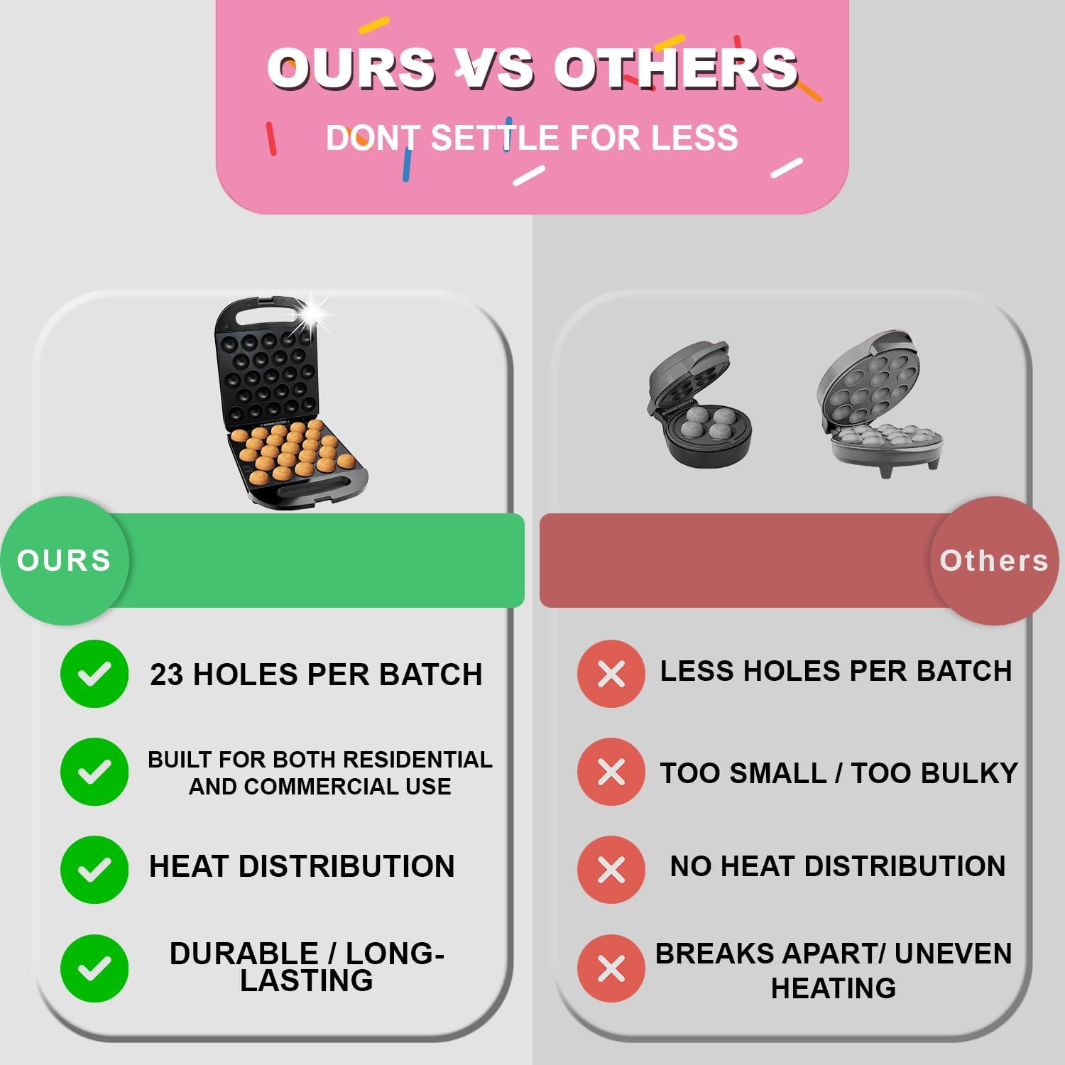 • Bake 23 Cake Pops at Once - Perfect for Parties & Big Batches: No more waiting or baking in small batches! This electric cake pop maker features 23 individual molds so you can whip up two dozen cake pops in just minutes. Ideal for birthdays, holidays, family gatherings, and school events—bake more in less time and keep everyone smiling.