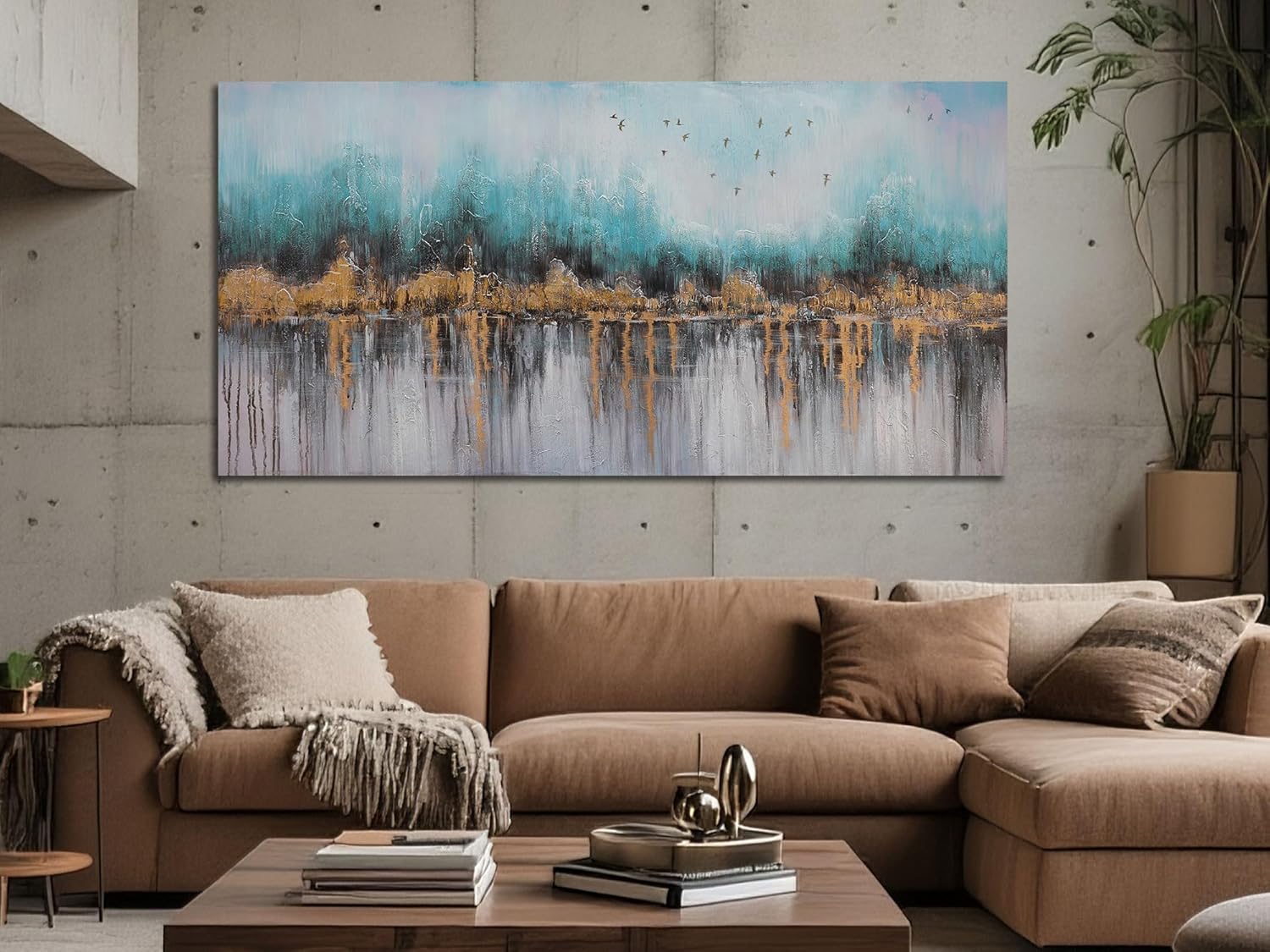 • Abstract Wall Art Size: 48inx24in (120cmx60cm), framed gallery wrapped ready to hang. It do have hand-painted textured, blue and teal colors create a unique and eye-catching piece that will be sure to draw attention