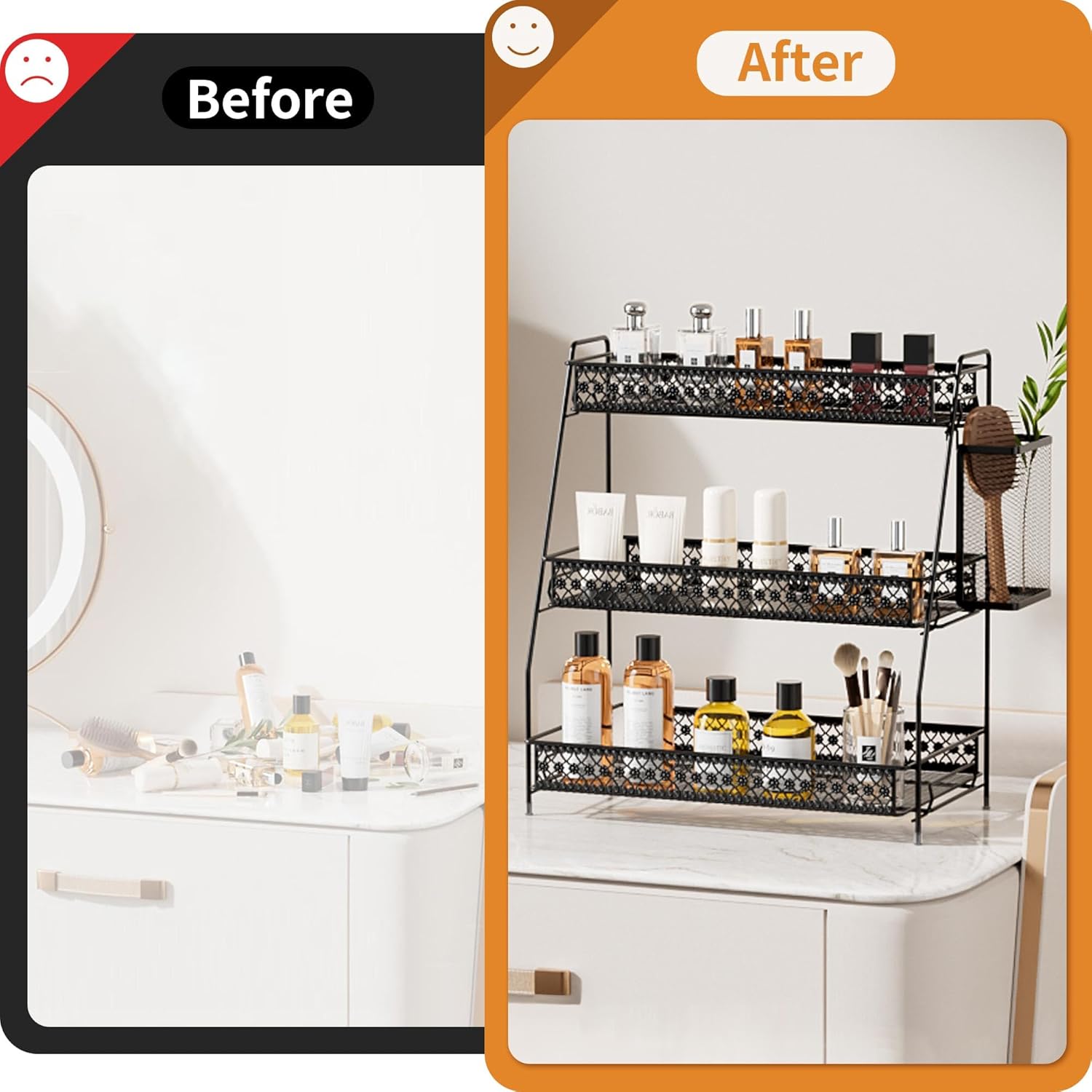 • 【3-Tier Organizer with Streamlined Design】Measuring 13.77"L x 7.08"W x 15.94"H, this organizer creates an ideal spice rack or bathroom counter organizer. The vintage design enhances any decor while delivering practical bathroom organizer functionality. Perfect for keeping daily essentials neatly organized and within easy reach without extra accessorie