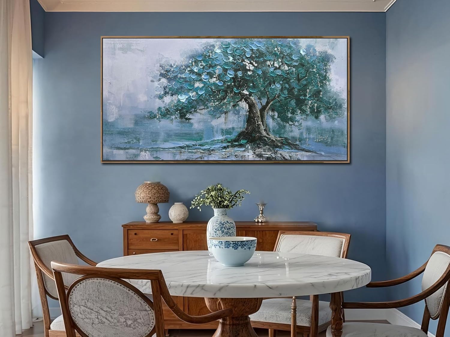 Ardemy Framed Tree Canvas Wall Art for Living Room Teal Tree of Life Landscape Bedroom Pictures Wall Decor Nature Paintings Artwork for Walls Home Office Dining Room Kitchen 40"x20"