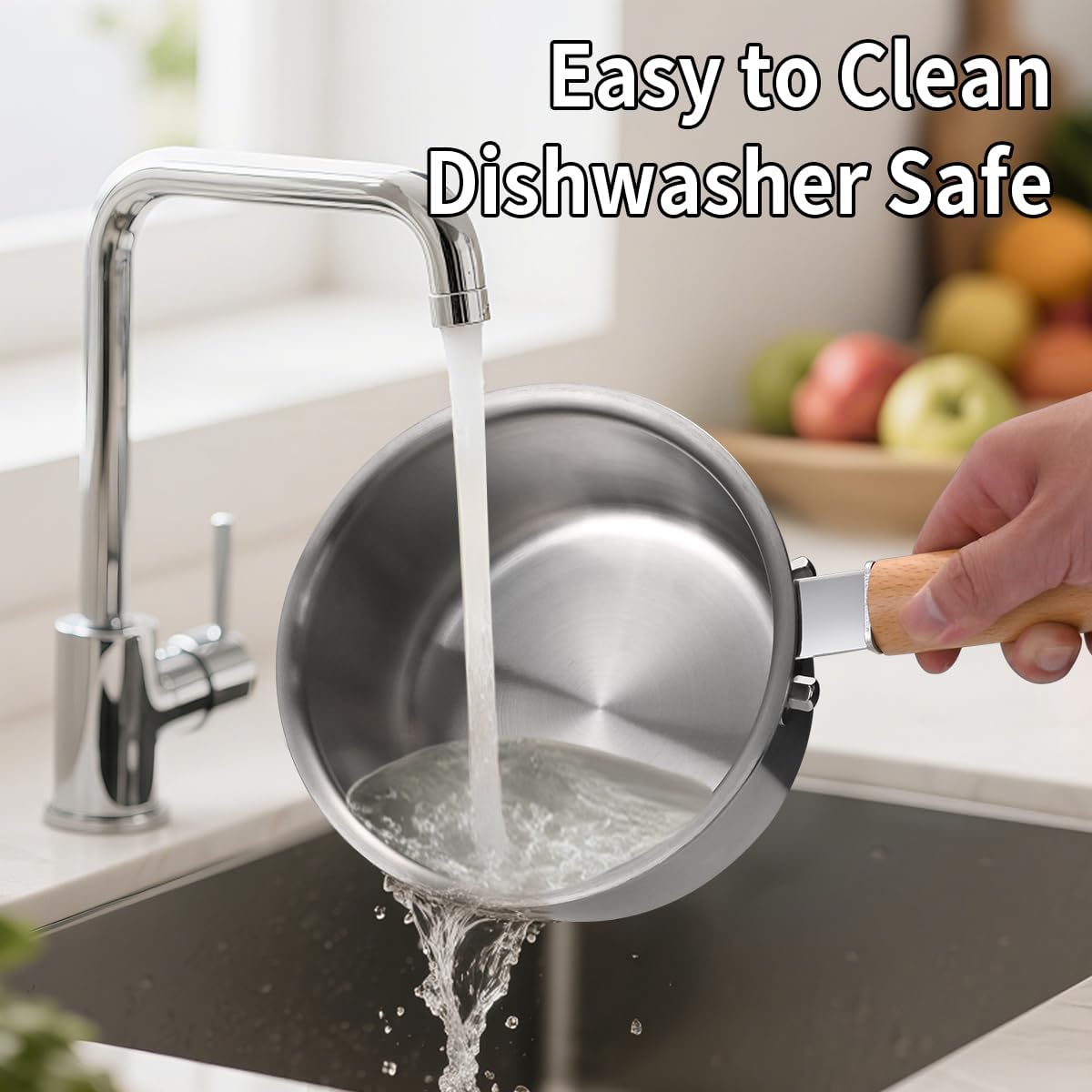 • Easy to Clean and Store: The smooth stainless steel sauce pot, no rivets no corners, finish wipes clean easily or can be tossed in the dishwasher for quick and no-fuss cleanup. Keep dry after washing. The removable handle makes storage more convenient, and the hook design allows the pot to be hung, saving space.