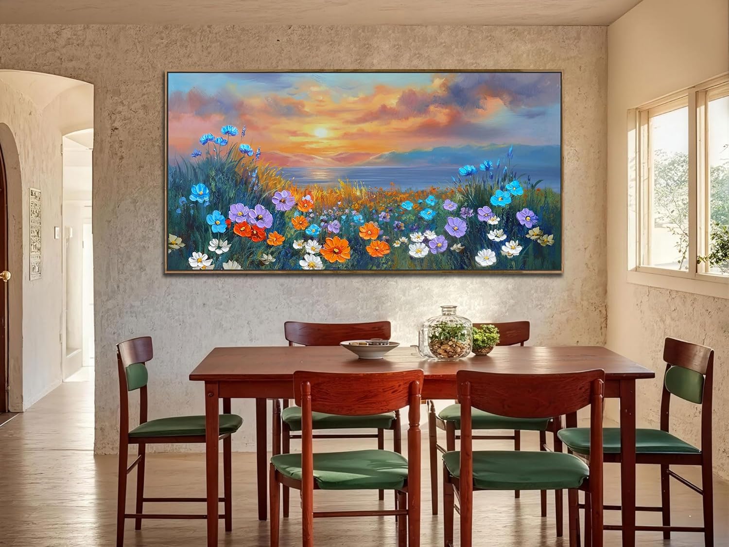 Ardemy Wildflower Wall Art for Living Room Large Framed Floral Canvas Pictures Bedroom Wall Decor Sunset Paintings Flower Textured Artwork for Walls Dining Room Home Office 48"x24"
