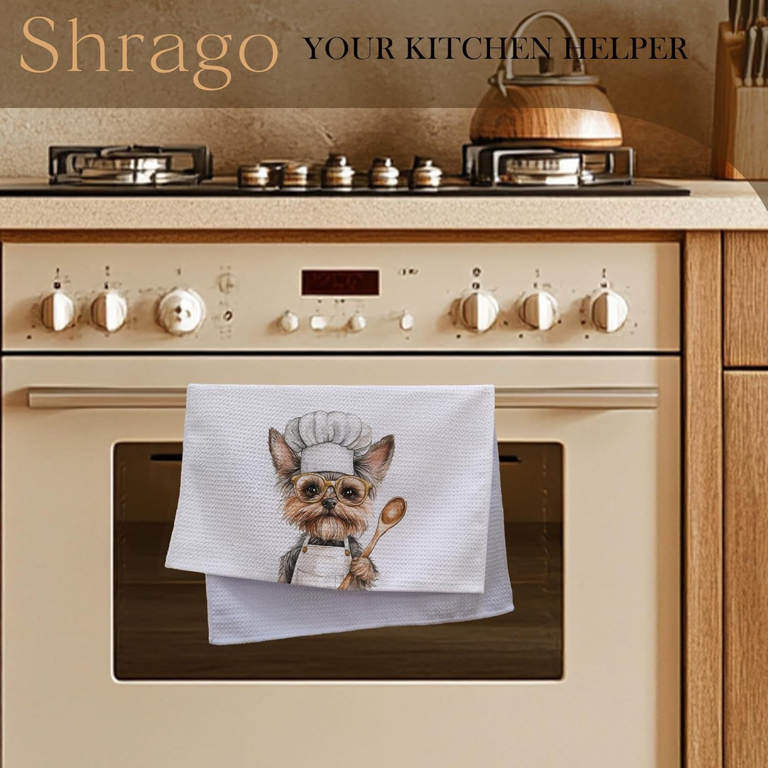 Funny Yorkshire Terrier Chef Kitchen Towels, Gifts for Dog Lovers Dish Tea Towels for Kitchen, Chef Gifts for Men Women Decorative Hand Towel, 16x24 Inch