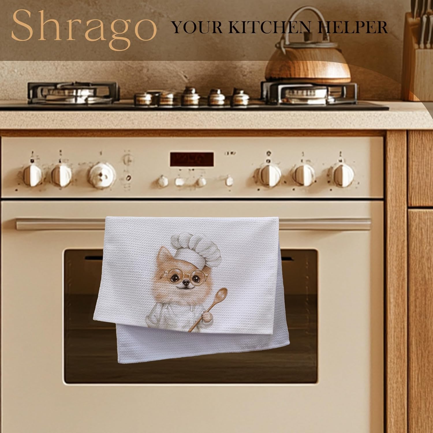 Funny Pomeranian Chef Kitchen Towels, Pomeranian Gifts for Women Dish Tea Towels for Kitchen, Gifts for Chefs Decorative Hand Towel, Gift for Dog Lovers, 16x24 Inch
