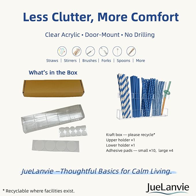 • 2. Declutter & Organize Your Straws – 9.5” large capacity with 5 compartments neatly separates straws, stirrers and brushes. Say goodbye to clutter and enjoy a tidy, organized cabinet.