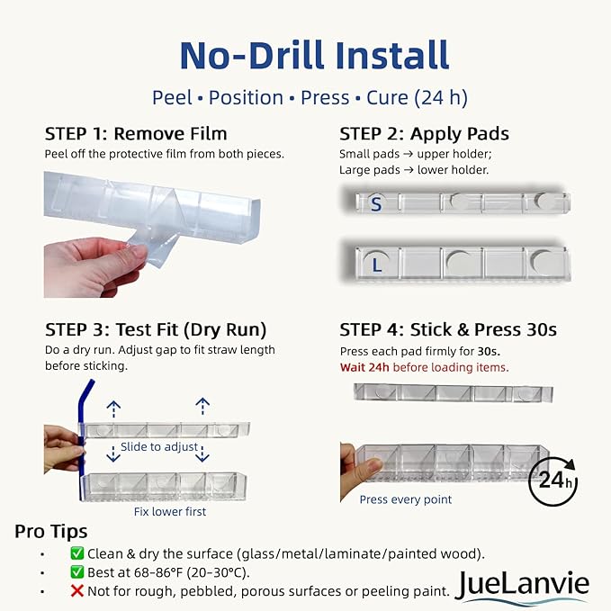Upgraded 9.5” Acrylic Straw Holder for Cabinet Door – Adjustable Two-Part Organizer, Clear Kitchen Storage with Strong Adhesive, Space-Saving, No Drilling, Renter-Friendly