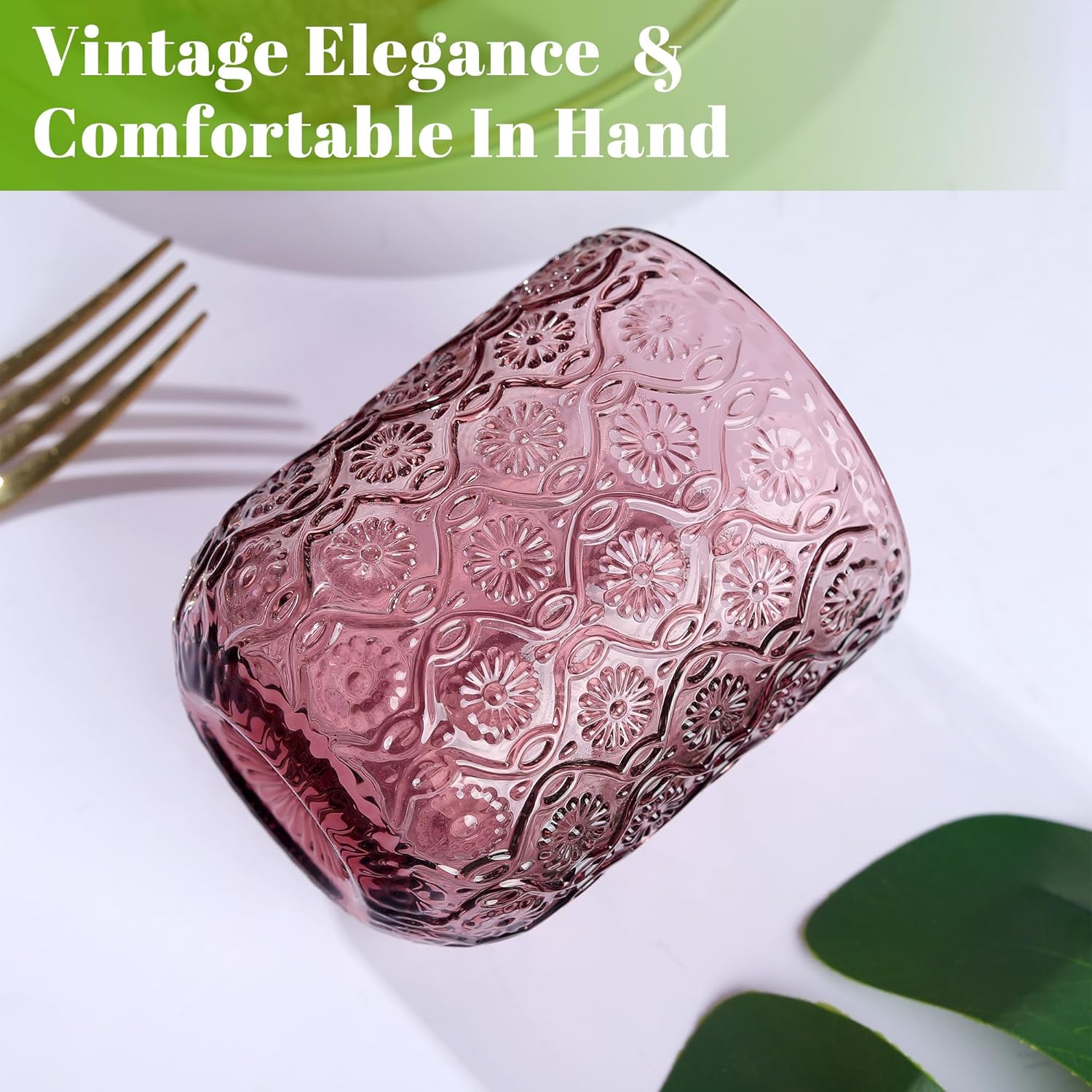 • Elegant Design: Our glass tumblers set of 4 has a unique embossed design, retro and elegant with texture. Combined with the color design, novel and stylish, add a touch of vintage-inspired style to any occasion.