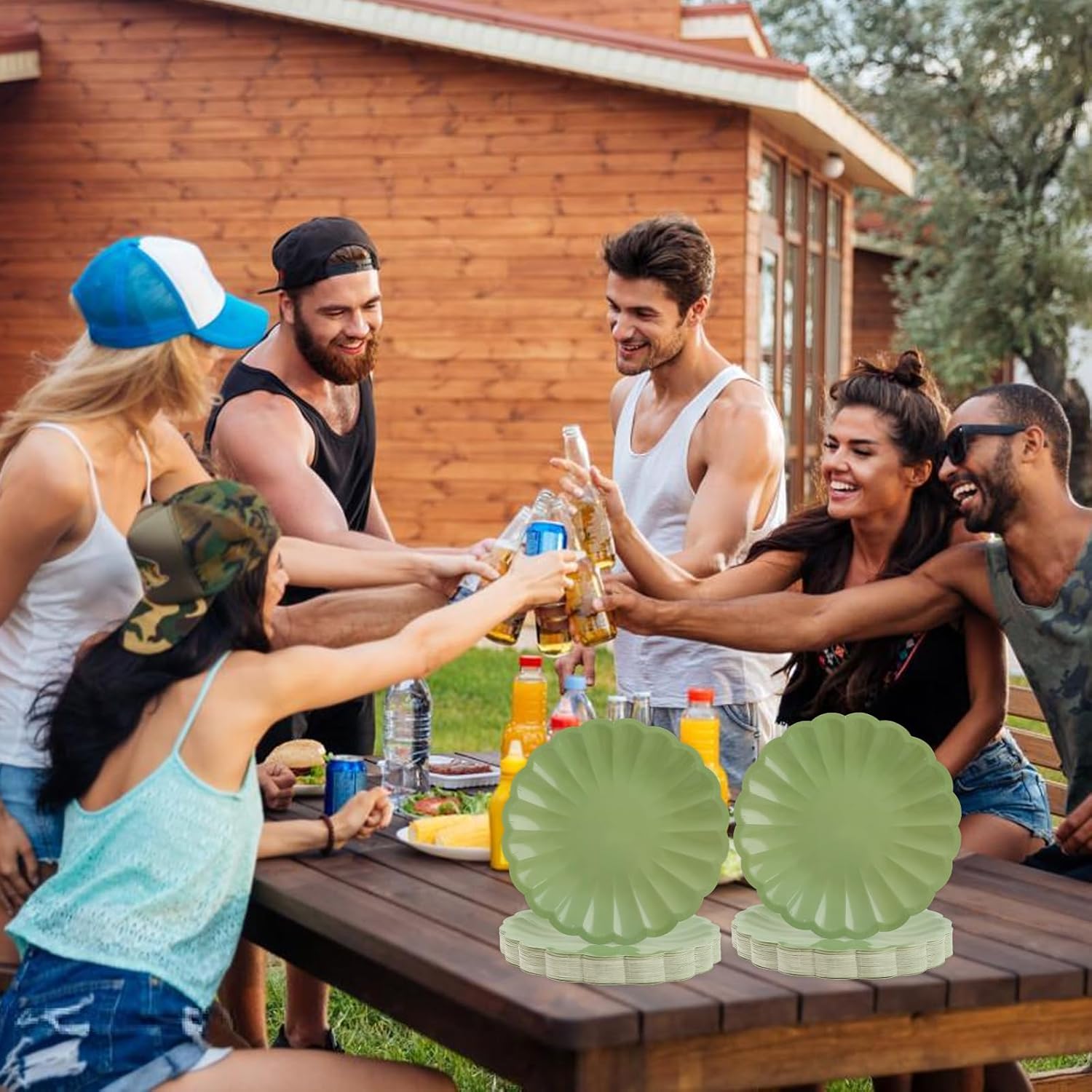 • Package Content: Including 50pcs sage green 7inch scalloped paper plates. Generously sized and beautifully designed, they meet your diverse needs—perfect for intimate gatherings or large group events.