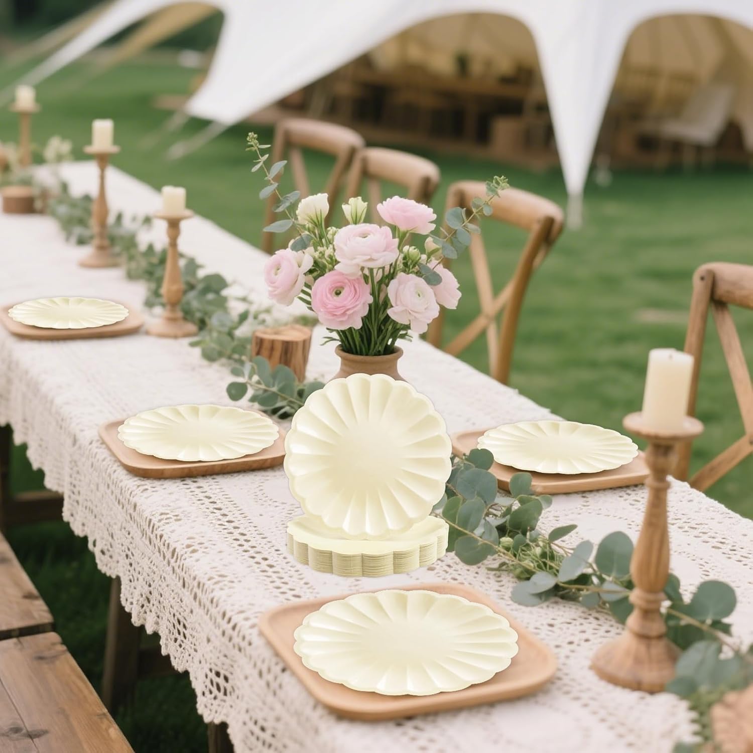• Package Content: Including 50pcs cream 7inch scalloped paper plates. Generously sized and beautifully designed, they meet your diverse needs—perfect for intimate gatherings or large group events.