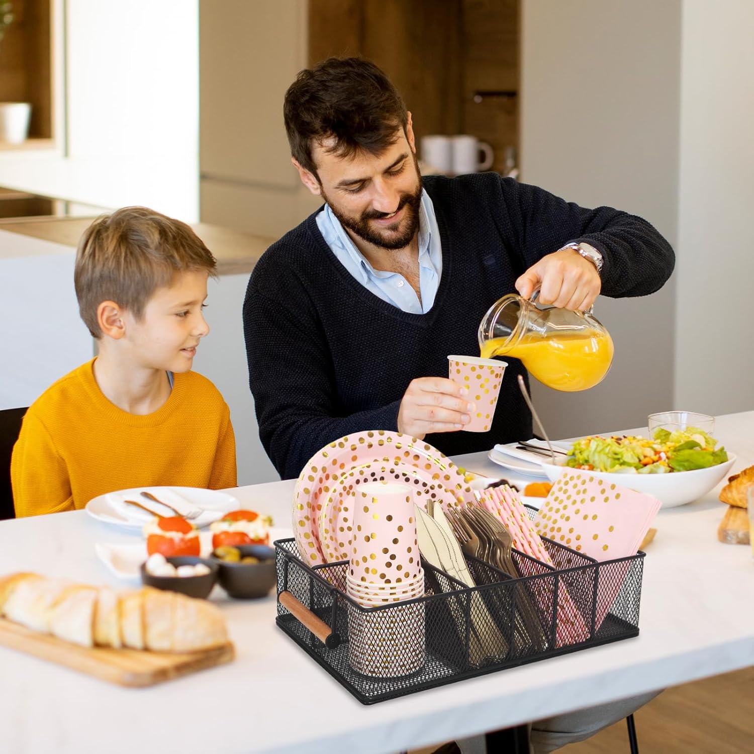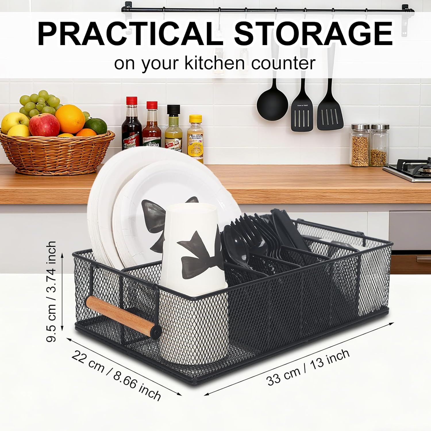 Paper Plate Holders with Wooden Handle for Countertop Cutlery Holder for Party Silverware Plastic Silverware Organizer Utensil Caddy for Kitchen,Picnic,Indoor/Outdoor Dinner Parties,BBQ