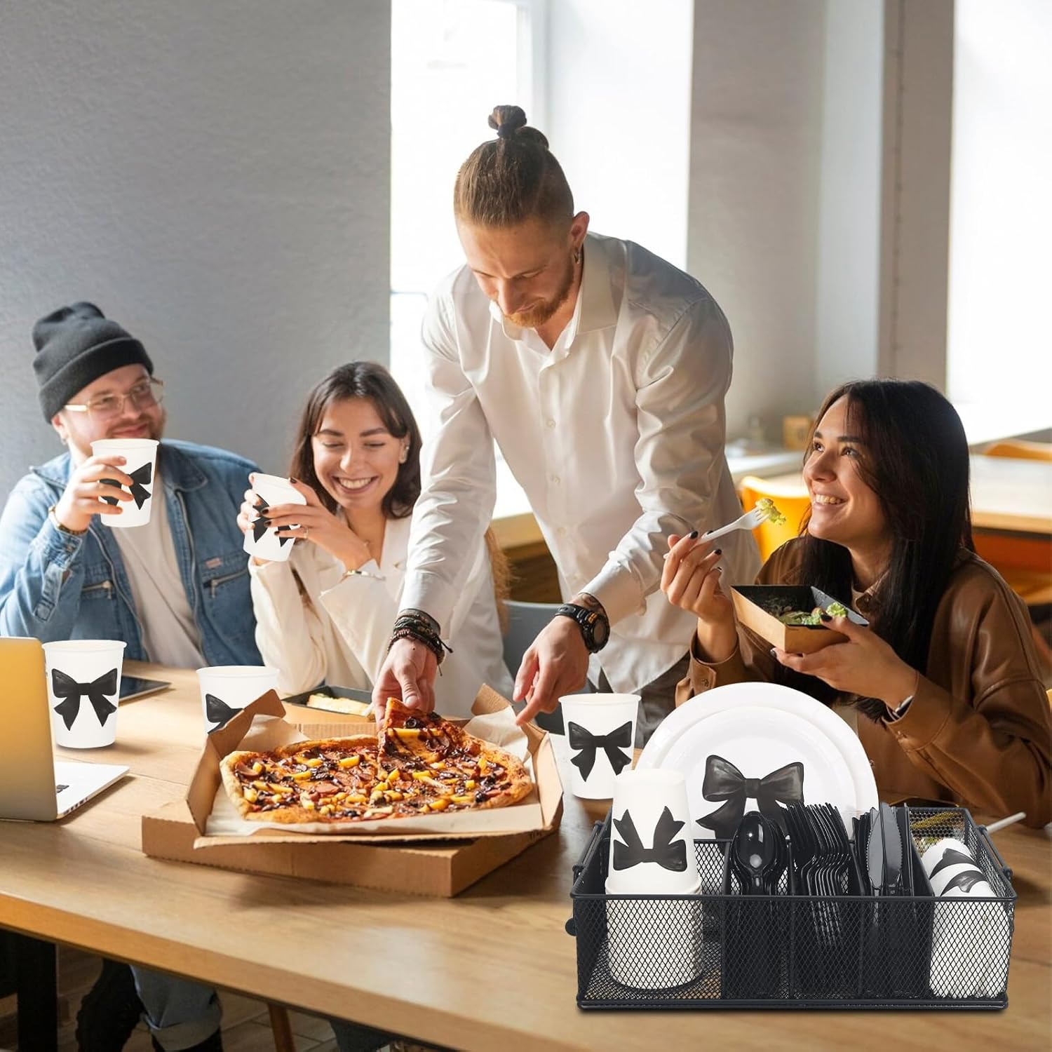 • 1.【Paper plate holders】 The paper plate holders made of iron has six storage spaces, which can easily accommodate paper trays, napkins, knives, forks, spoons, paper cups, straws and other tableware.