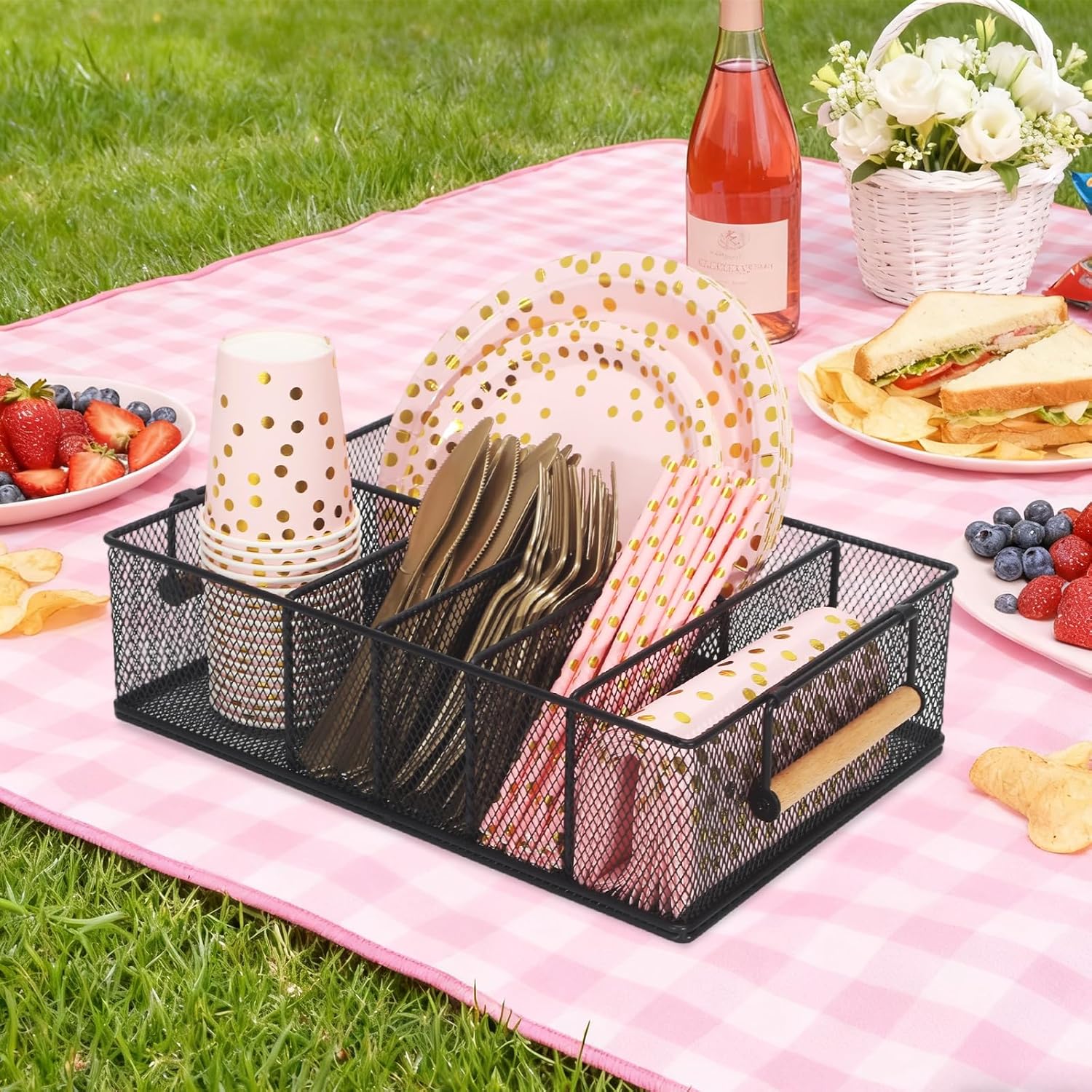 • 3.【Party camping】 The utensil organizer is suitable for multiple scenarios, indoor/outdoor gatherings, and parties. Picnics, RVs, and camping can all effectively complete the task of storing tableware, and the handles on both sides are easy to carry.
