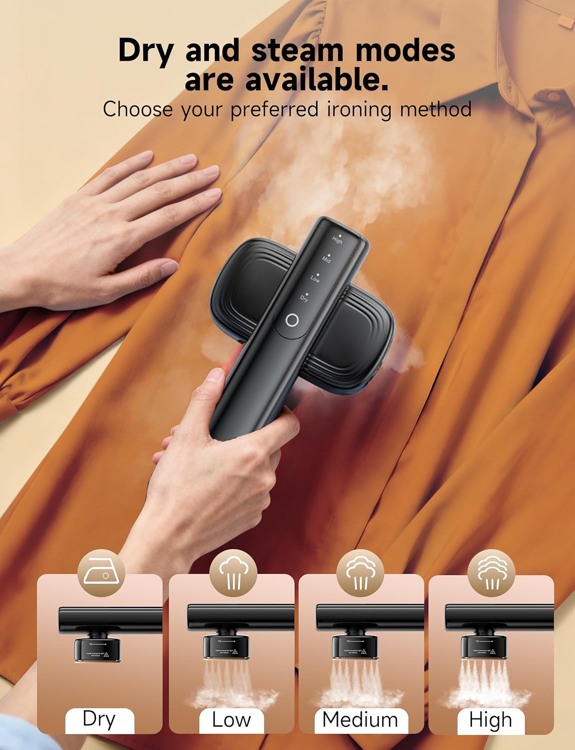 • Three Adjustable Steam Levels: Tackle a variety of fabrics with ease. Choose from three steam modes to gently handle delicate silk and lace, effectively smooth cotton and linen, or powerfully press denim and wool. This customizable approach ensures optimal wrinkle removal while protecting your garments.