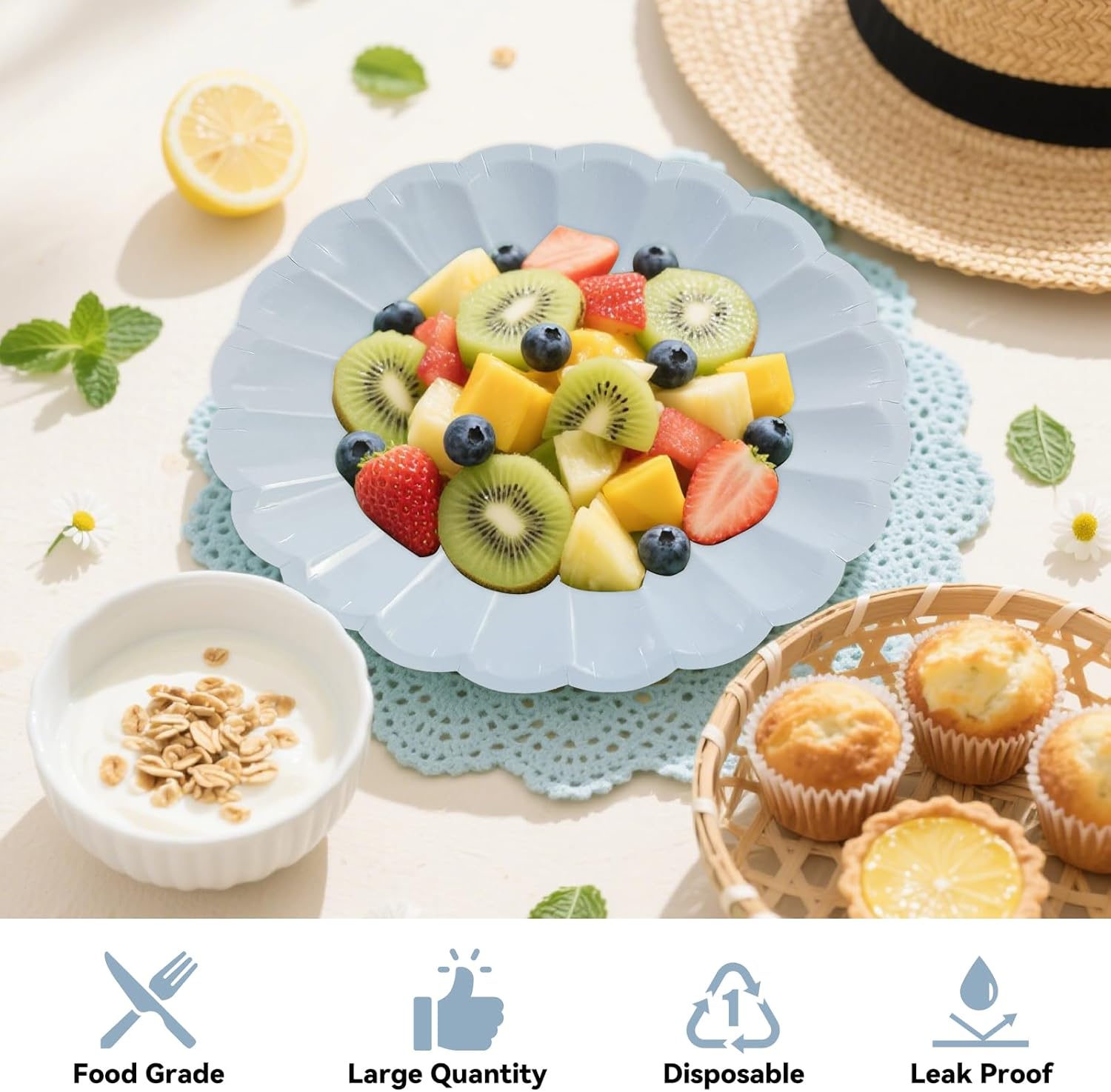 • Package Content: Including 50pcs light blue 9inch scalloped paper plates. Generously sized and beautifully designed, they meet your diverse needs—perfect for intimate gatherings or large group events.