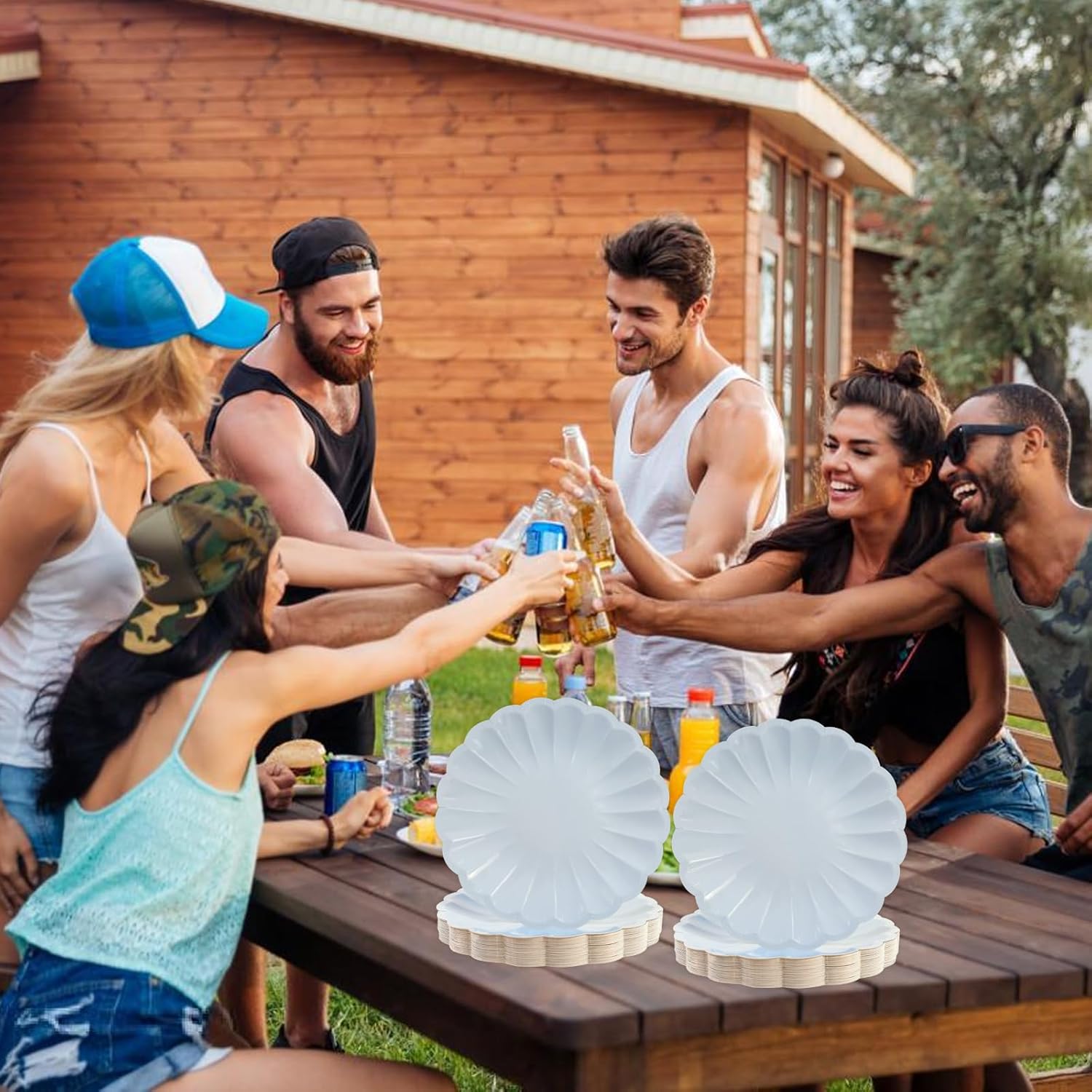 • Exquisite Design: Featuring an elegant scalloped design, this piece infuses traditional paper plates with charming, contemporary flair. Its distinctive silhouette leaves a lasting impression. Not only does it add an air of elegance to party decor, but it also helps guests unwind and fully savor the joy of gathering together.