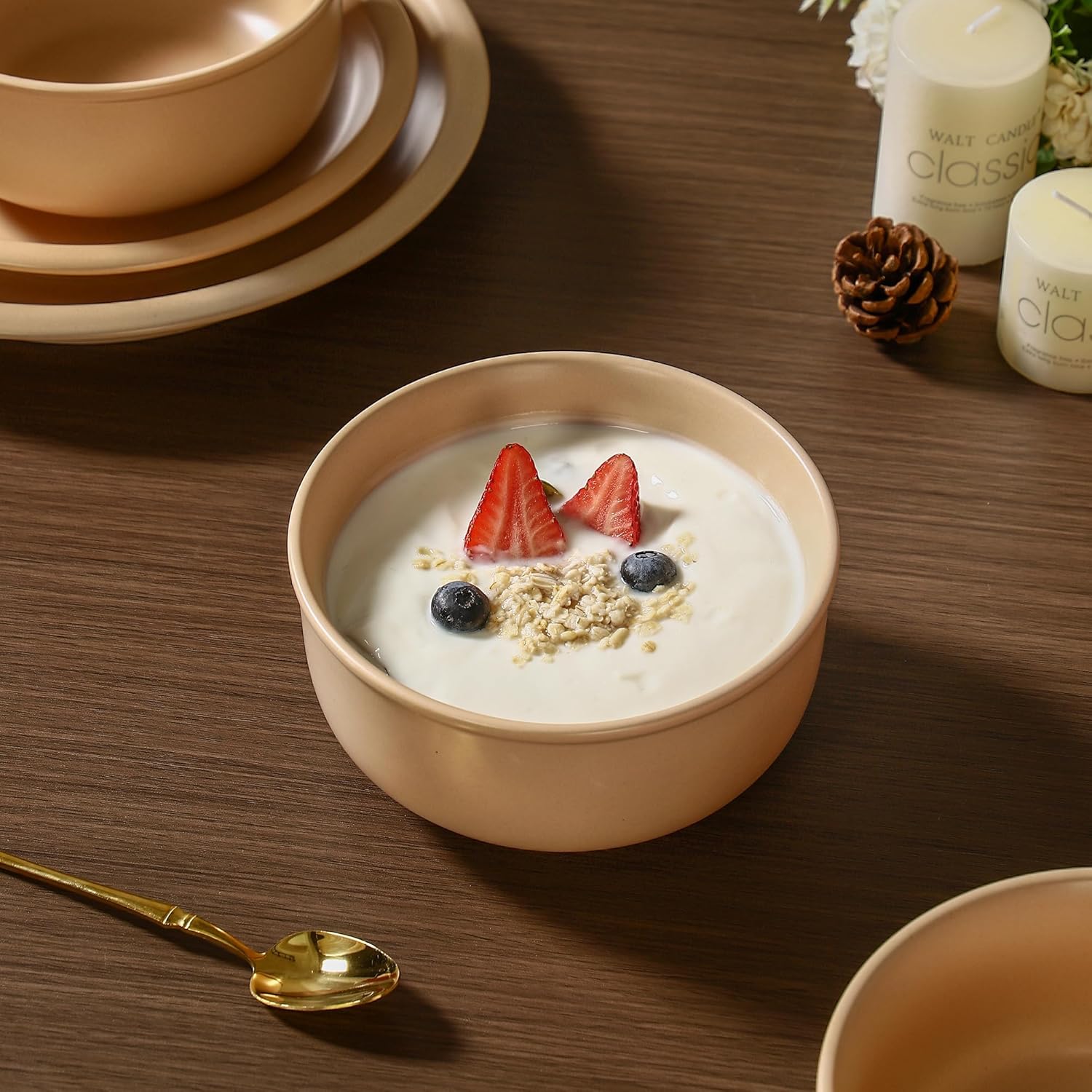 GZG 6-Inch Ceramic Cereal Bowls Set of 4, Rustic Matte Glazed Stoneware Bowls for Cereal, Soup, Salad & Snacks, 30 oz Capacity, Microwave & Dishwasher Safe(Warm Sand)