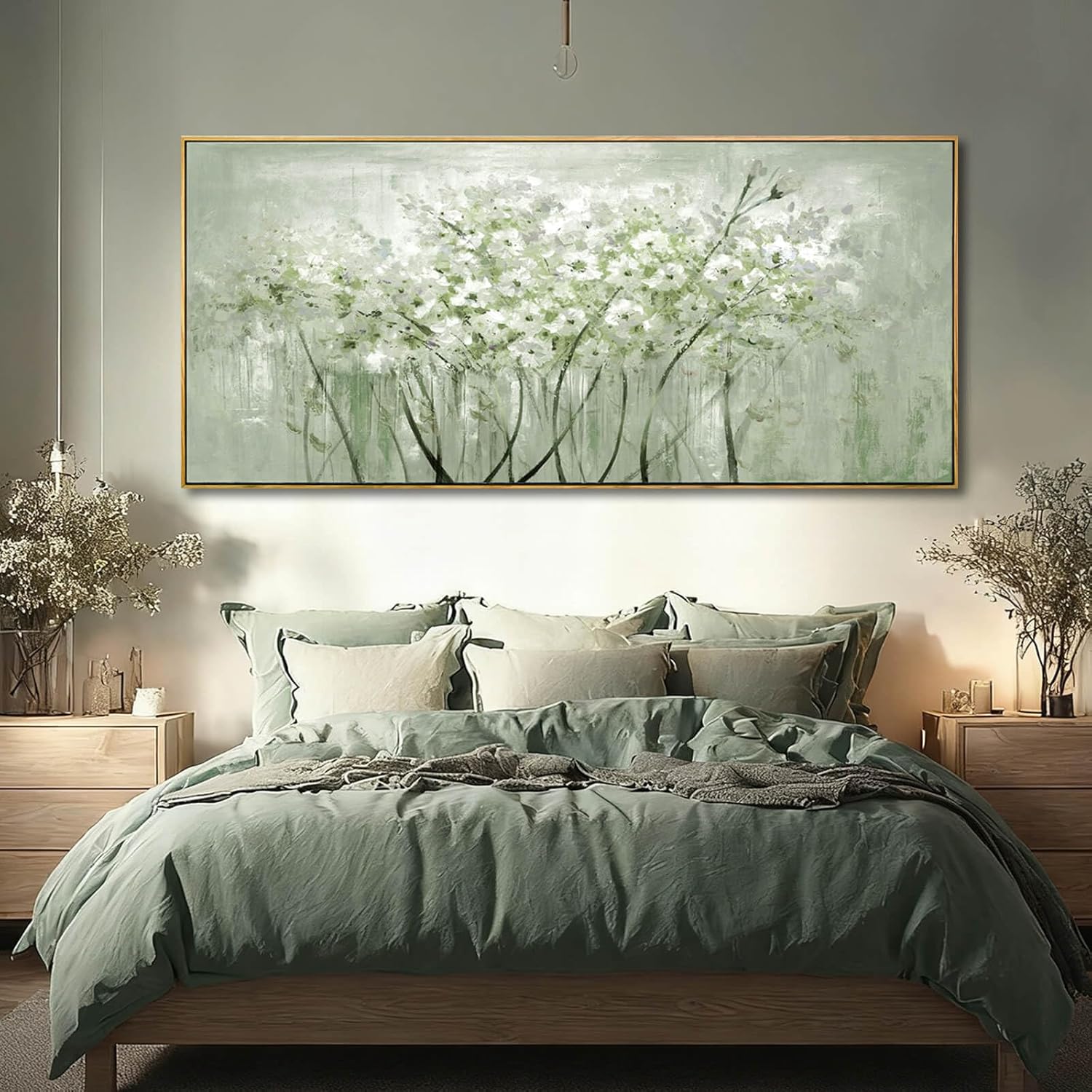 MLART99 Soft Green and White Floral Canvas Extra large Flower Wall Art Texture Botanical Print Plant Posters- 32x70 Inch Modern Home Decor for Living Room Entryway