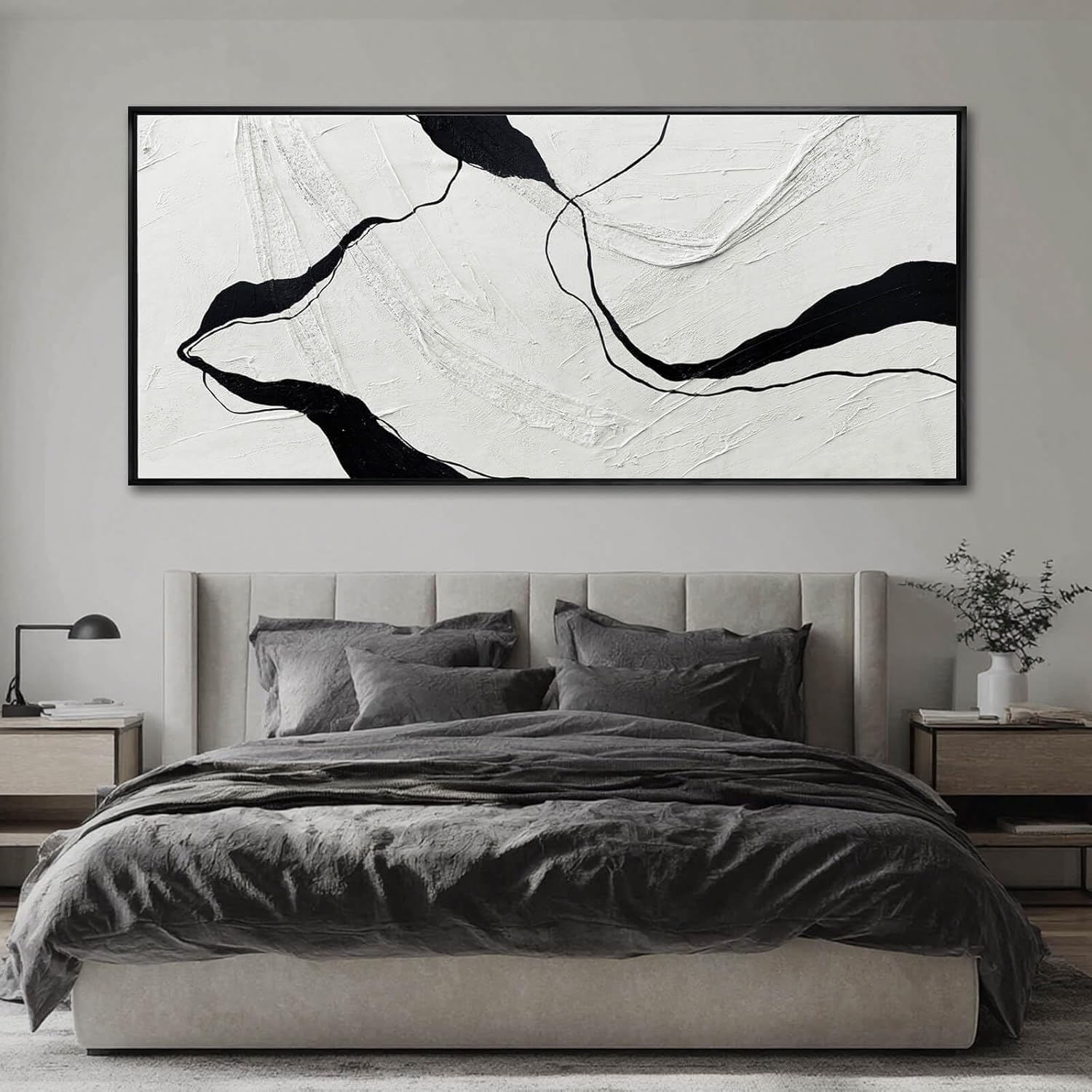 MLART99 Abstract Black and White Textured Canvas Minimalist Wall Art Modern Monochrome Painting - 32x70 Inch Contemporary Decor for Living Room Entryway