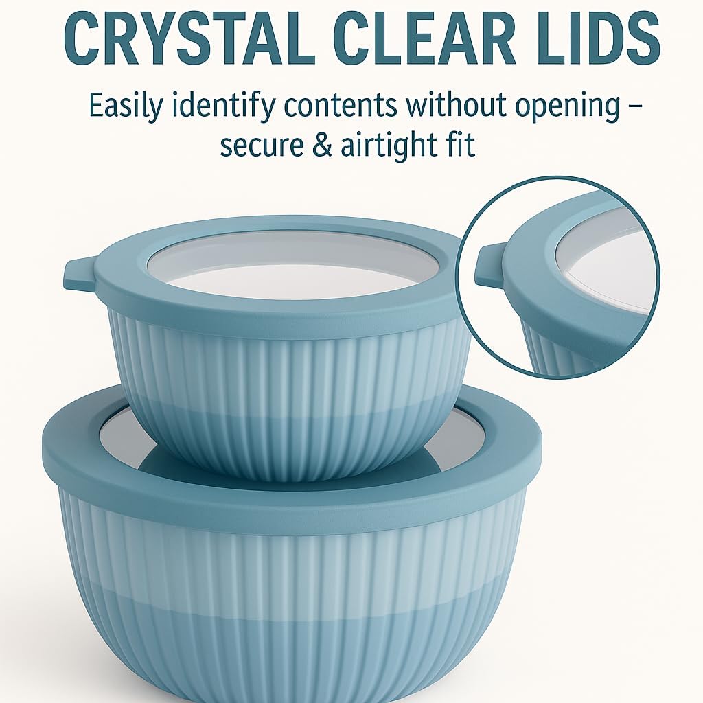 • Versatile for All Kitchen Tasks: From mixing batter to tossing salads, storing leftovers, or marinating meats, these mixing bowls with lids set does it all. Microwave and freezer safe, they’re the ultimate kitchen bowls with lids set for prepping, serving, and storing hot or cold meals.