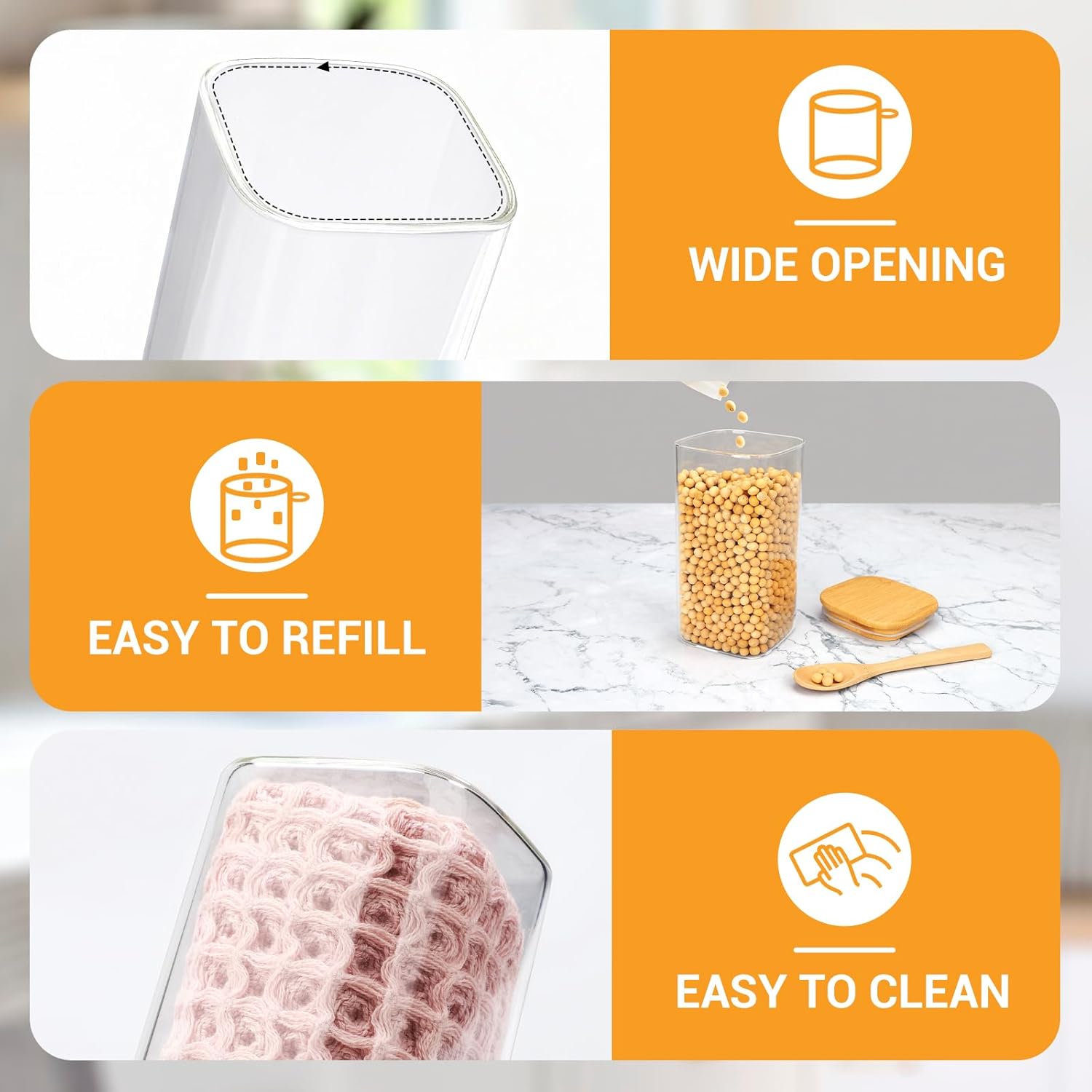 • Glass Canisters with Airtight Bamboo Lids - Each air tight glass container features a bamboo lid with a silicone seal that keeps food fresh and safe from moisture or dust. These food storage jars are great for everyday use.