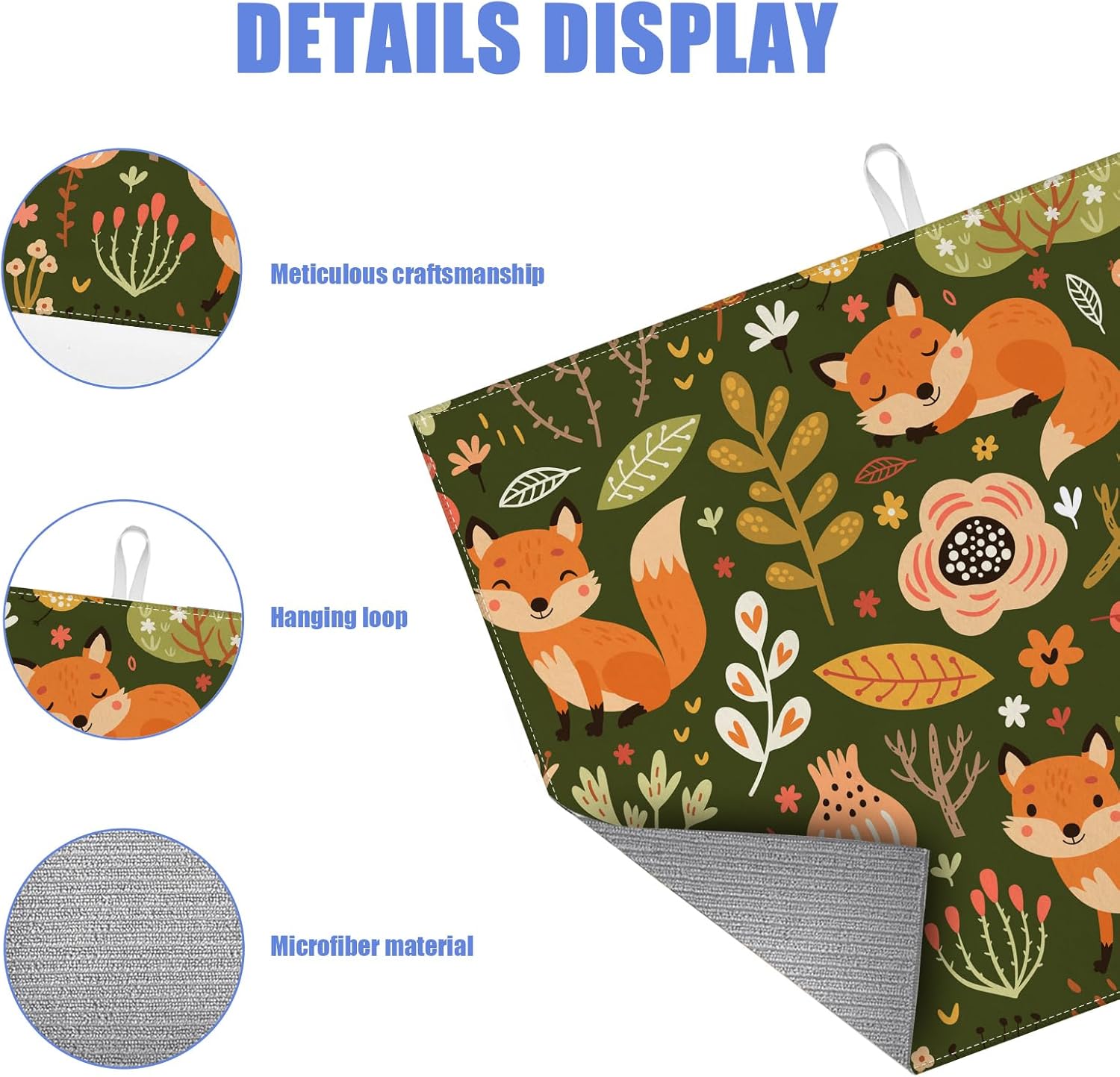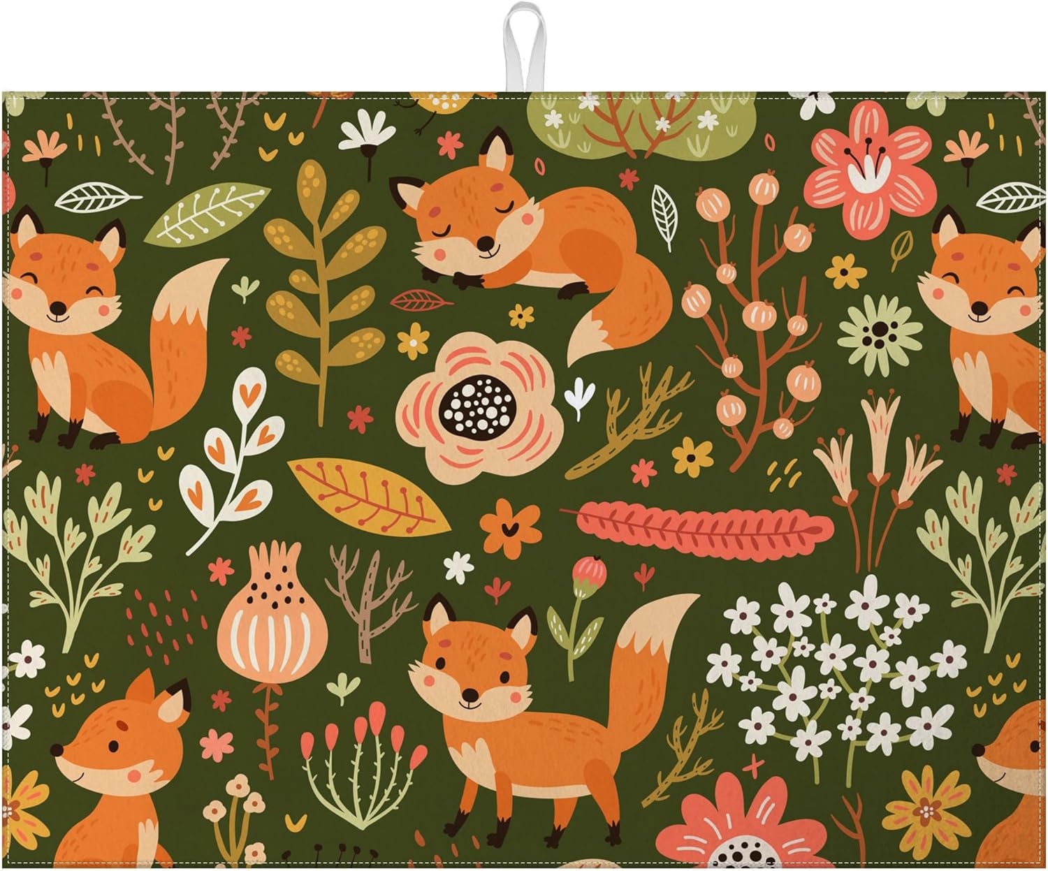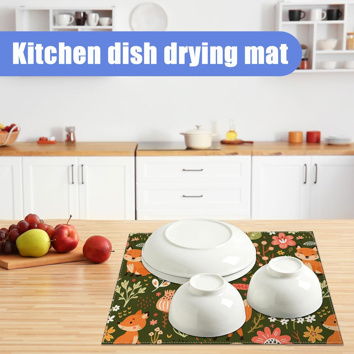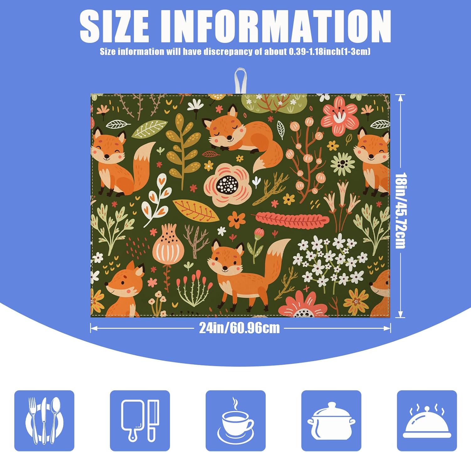 Cute Fox Dish Drying Mat for Kitchen Counter Animals Drying Pad Absorbent Reversible Dish Drainer Rack Mats Draining Pad 18"x24"Inch