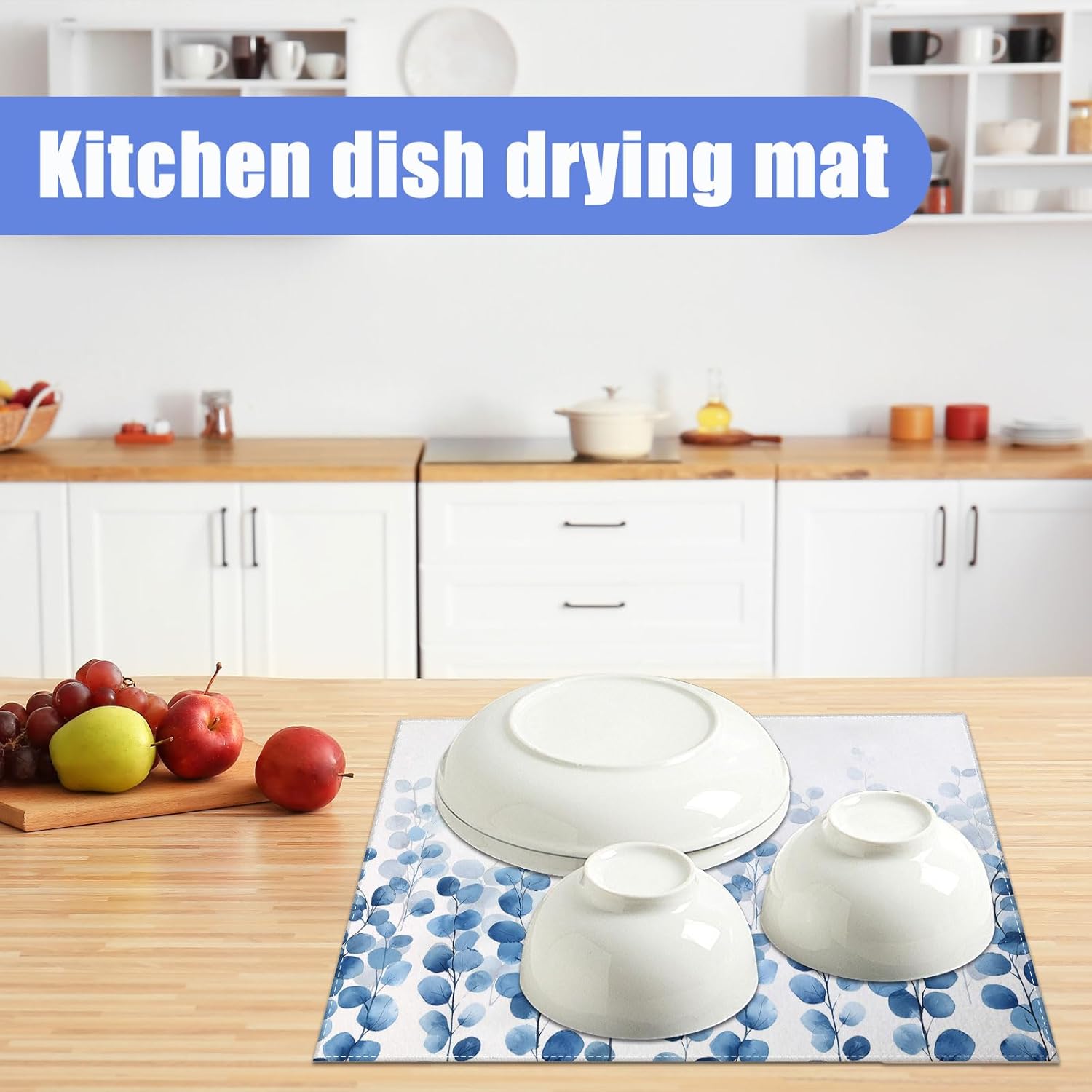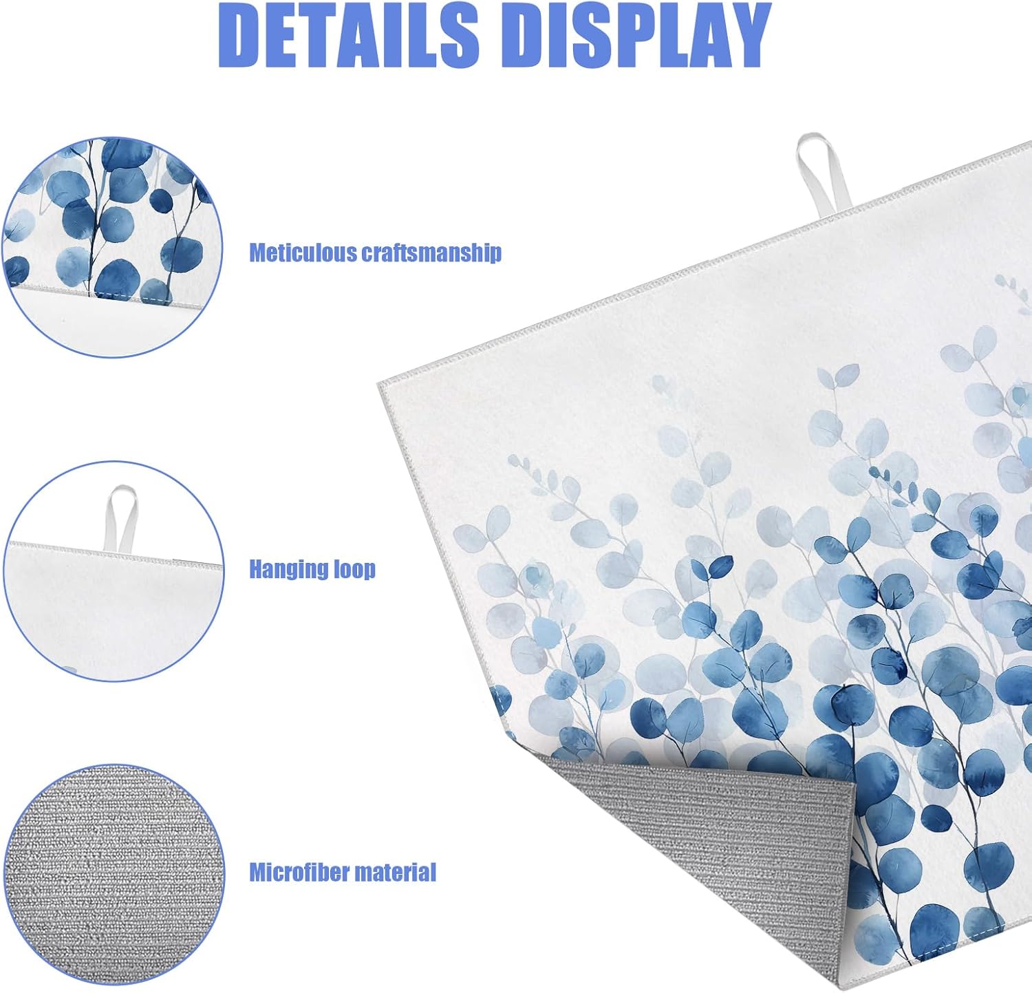 Blue Eucalyptus Leaves Dish Drying Mat for Kitchen Counter Drying Pad Absorbent Reversible Dish Drainer Rack Mats Draining Pad 18"x24"Inch