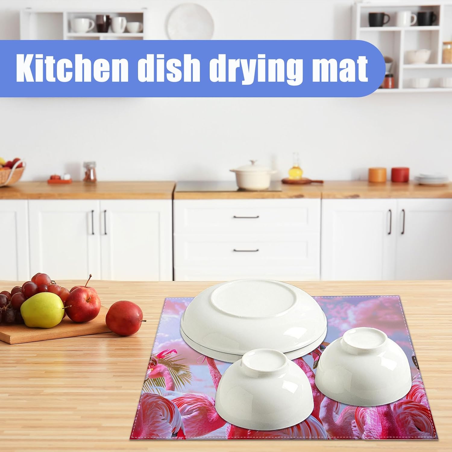 Spring Summer Flamingo Dish Drying Mat for Kitchen Counter Drying Pad Absorbent Reversible Dish Drainer Rack Mats Draining Pad 18"x24"Inch