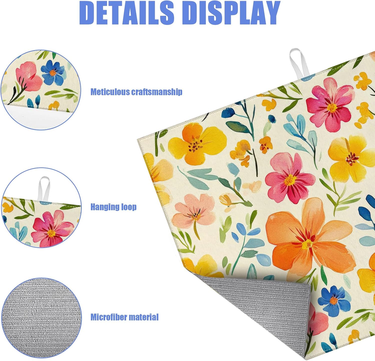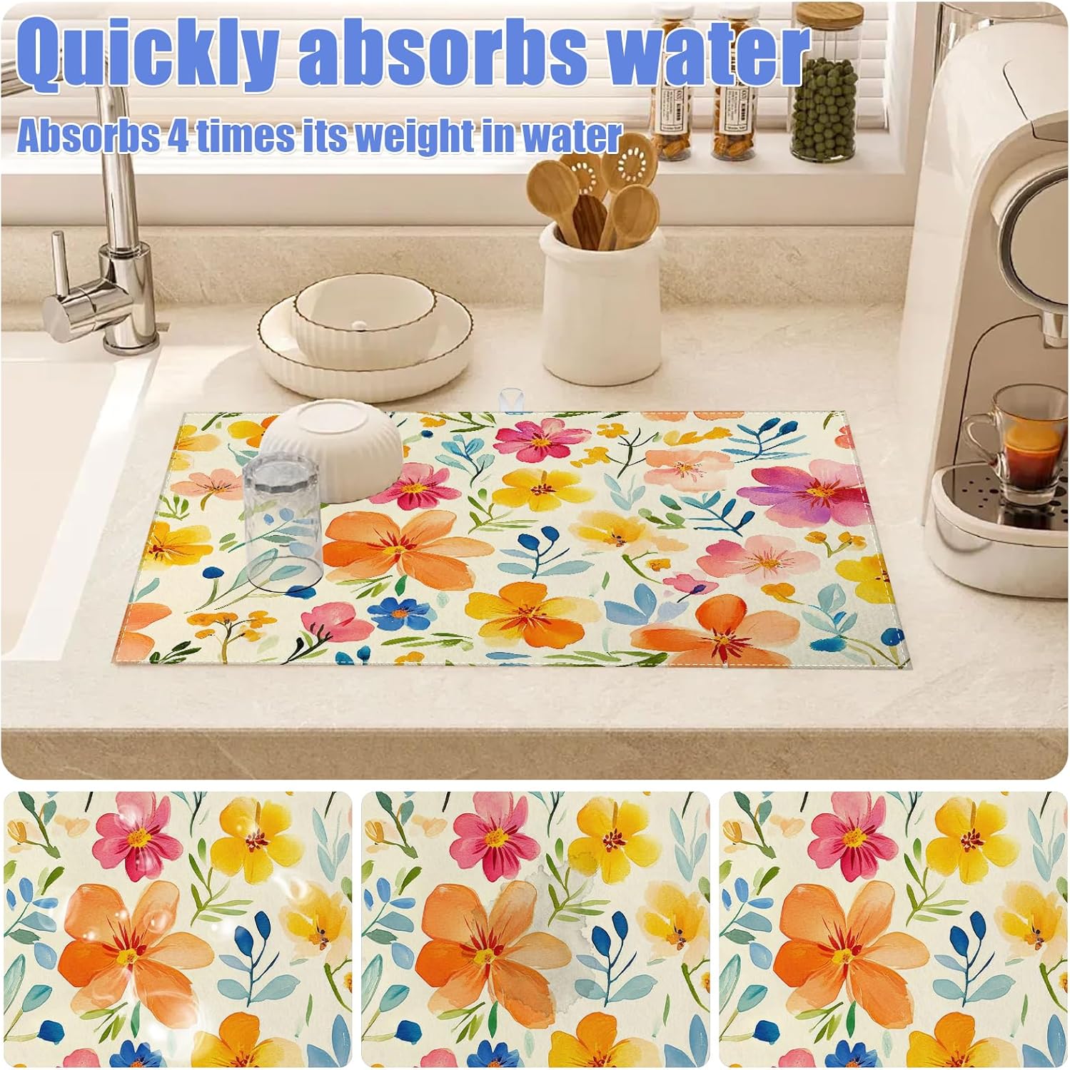 Colorful Flower Dish Drying Mat for Kitchen Counter Spring Floral Drying Pad Absorbent Reversible Dish Drainer Rack Mats Draining Pad 18"x24"Inch