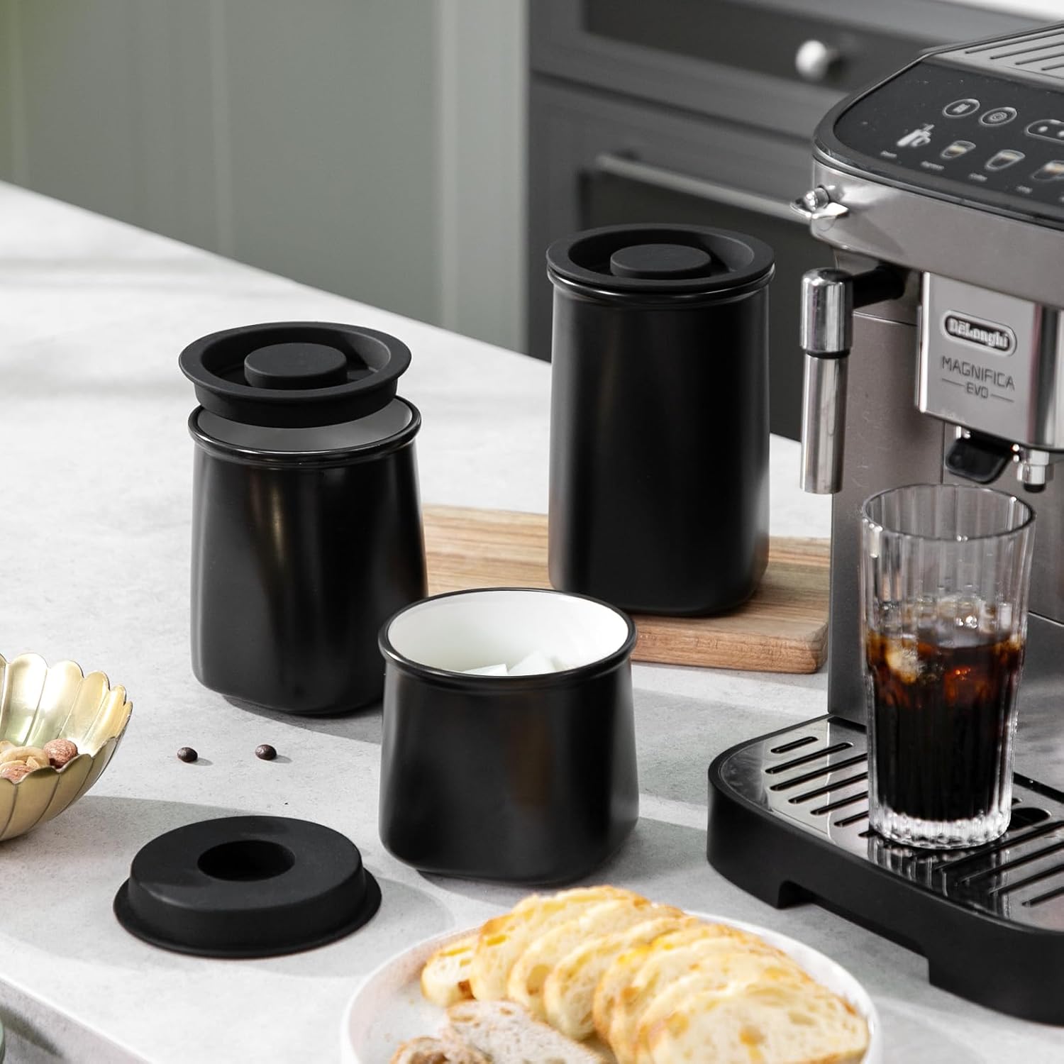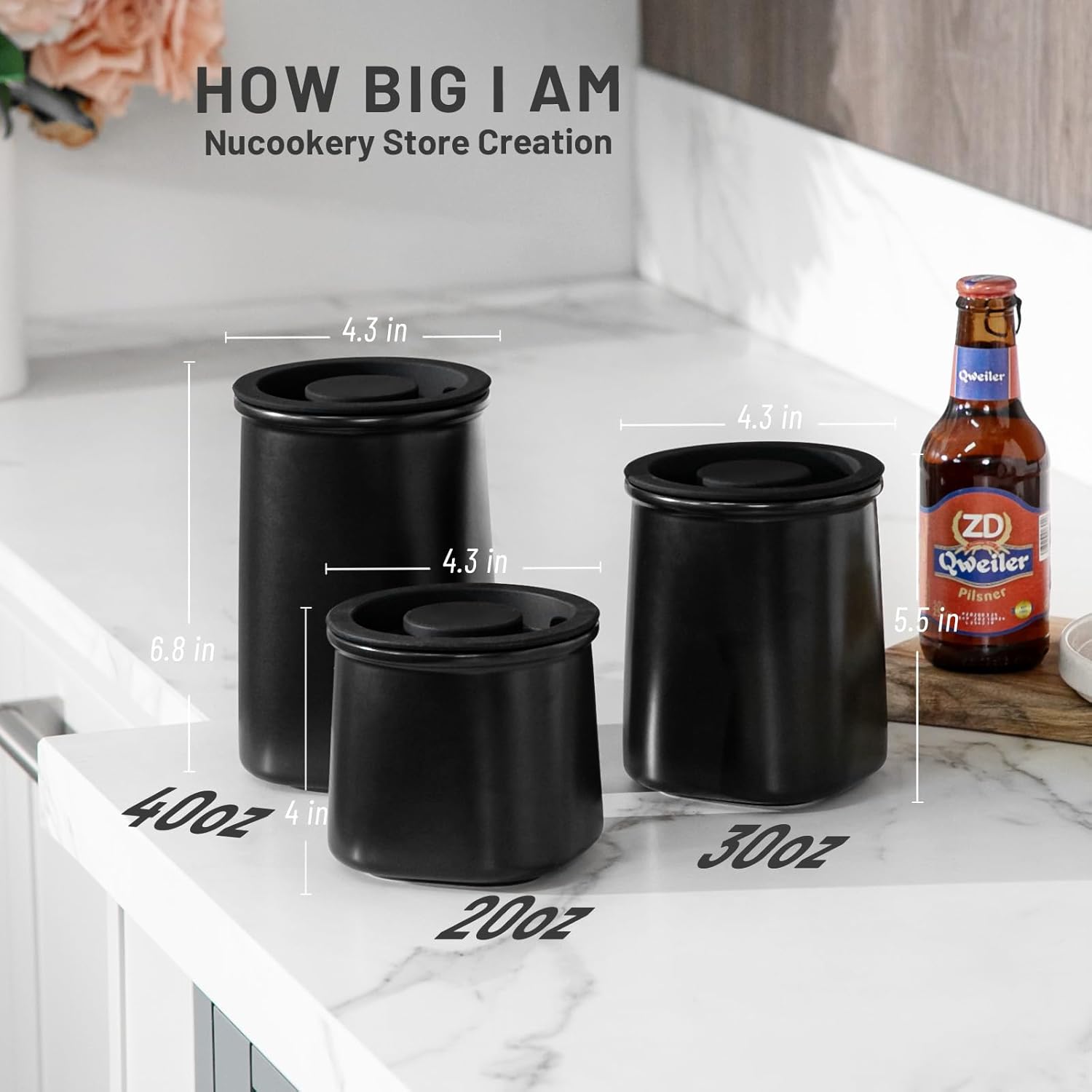Nucookery Canisters Sets for the Kitchen Countertop, 3 Pcs Ceramic Jar with Silicone Lid, 40oz, 30oz, 20oz Food Storage Containers for Flour, Sugar, Coffee, Grains,Tea, Cookies, Dry Food Organization