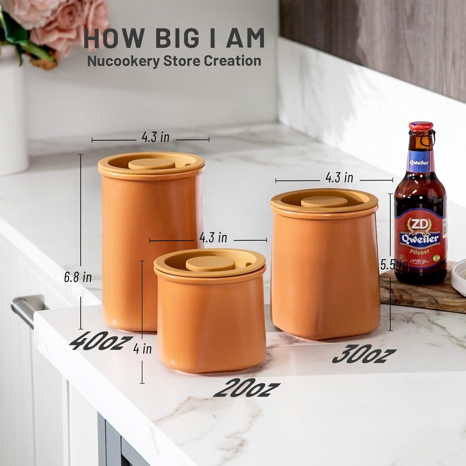 Nucookery Canisters Sets for the Kitchen Countertop, 3 Pcs Ceramic Jar with Silicone Lid, 40oz, 30oz, 20oz Food Storage Containers for Flour, Sugar, Coffee, Grains,Tea, Cookies, Dry Food Organization
