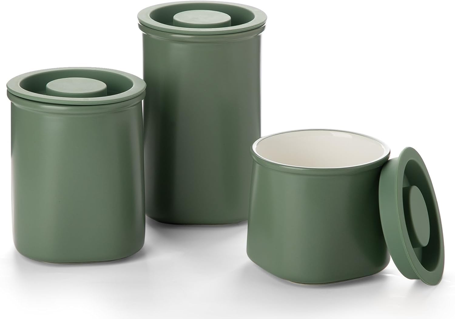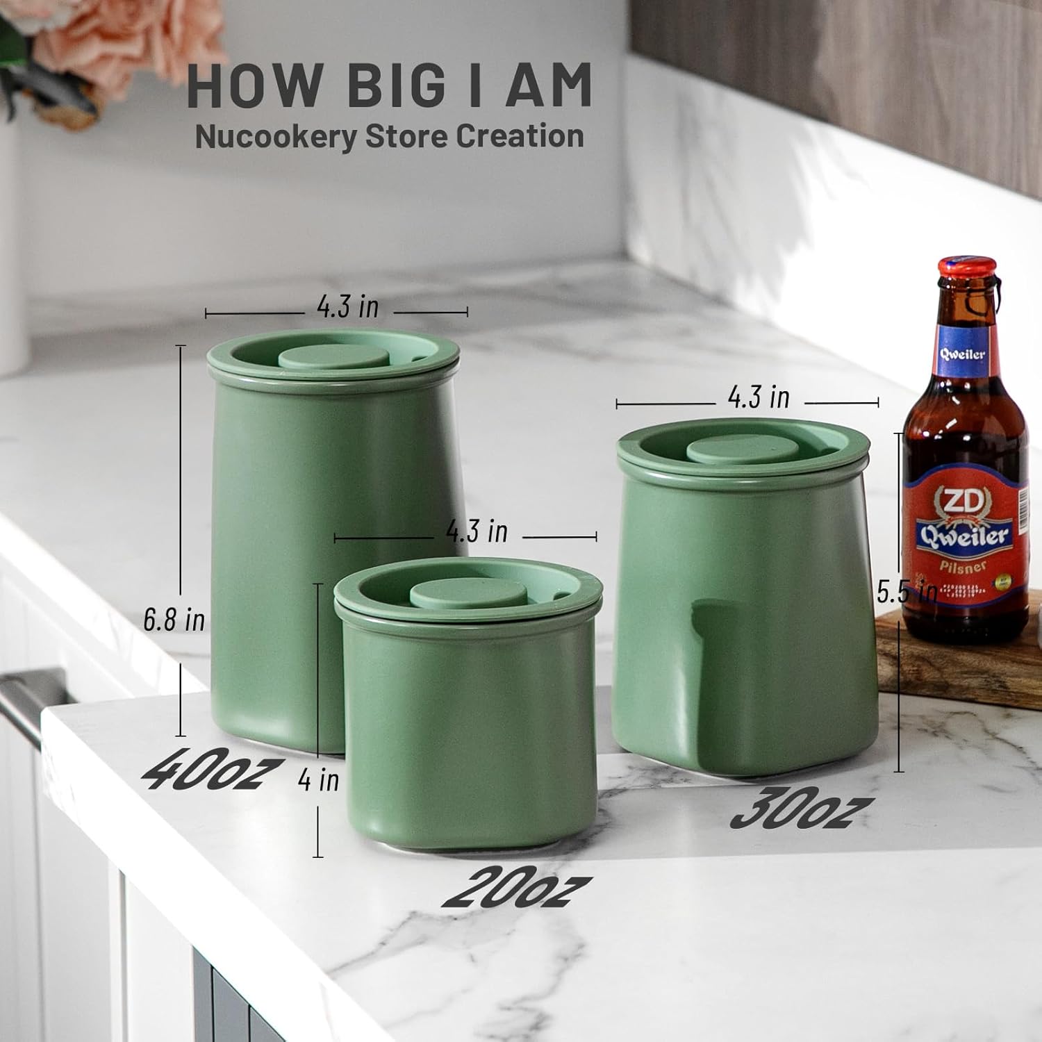 Nucookery Canisters Sets for the Kitchen Countertop, 3 Pcs Ceramic Jar with Silicone Lid, 40oz, 30oz, 20oz Food Storage Containers for Flour, Sugar, Coffee, Grains,Tea, Cookies, Dry Food Organization