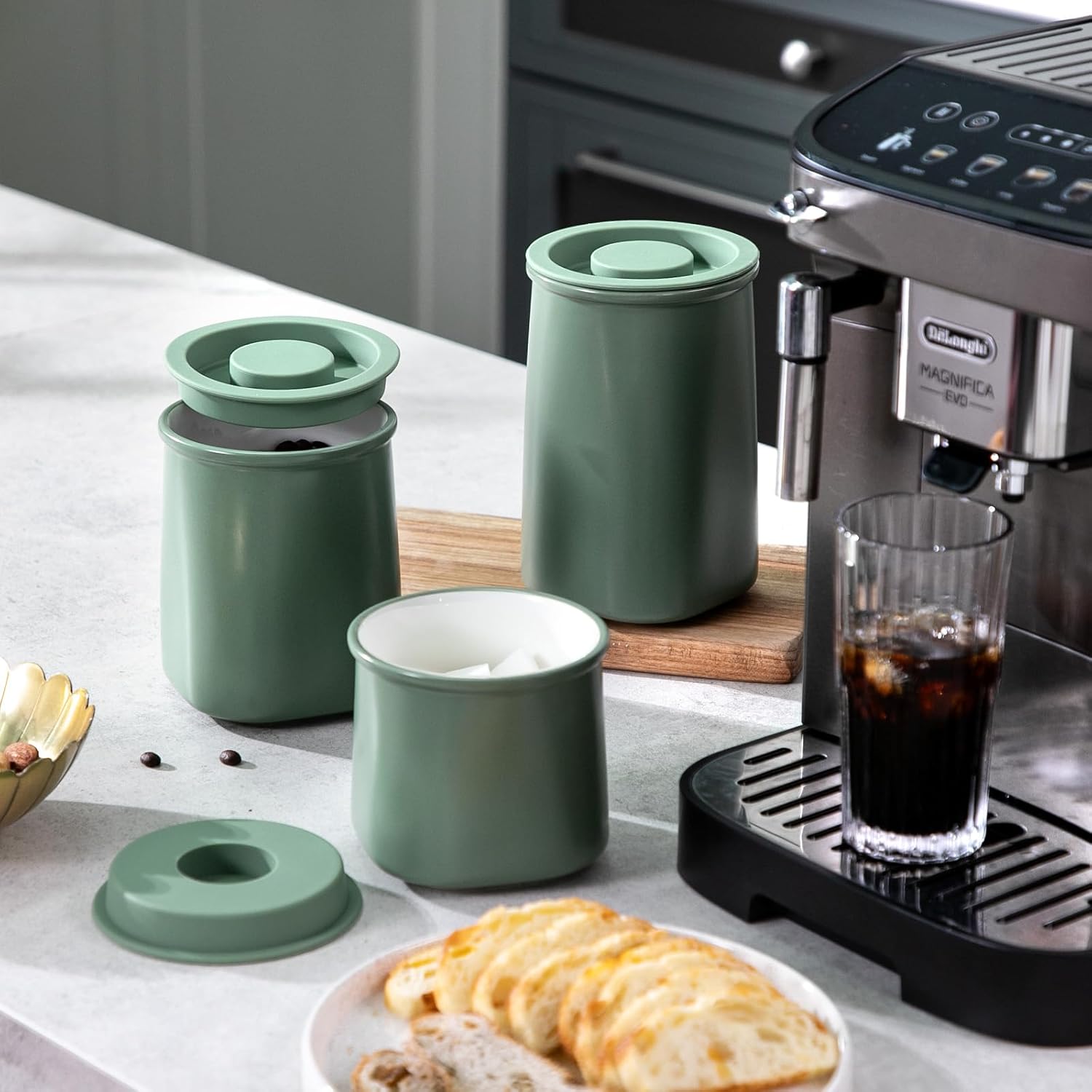 • Perfect Airtight Seal-----Our ceramic canisters feature innovative silicone lids. Simply press the center of the lid until it sits below the rim to lock out air and moisture. This keeps your dry foods fresher