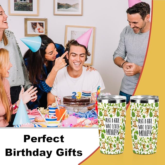 Cute Monkey Print Tumbler,Monkey Gifts 20 oz Stainless Steel Coffee Mug,Travel Cup,Insulated Cup with Lid for Car, Perfect Gifts for Women Monkeys Lover Friend Mom Sister Christmas Birthday