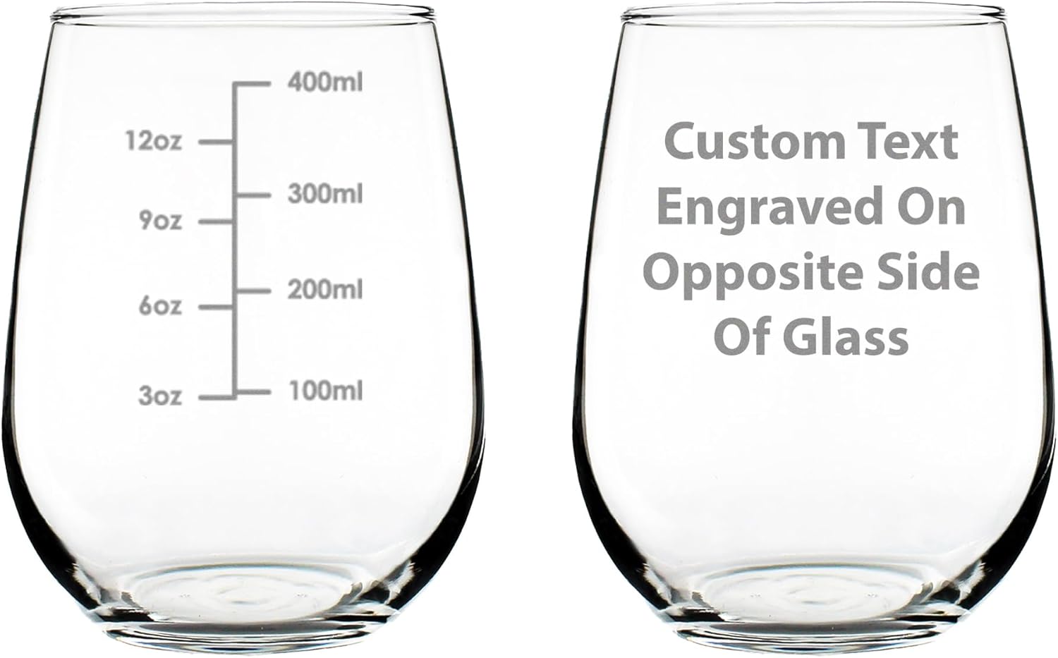 Custom Wine Measuring Cup - Personalized Stemless Wine Glass - Engraved Measurement Lines for Portion Control - Ounces and Metric - Large 17 Ounce - Customized Wine Glass Gift