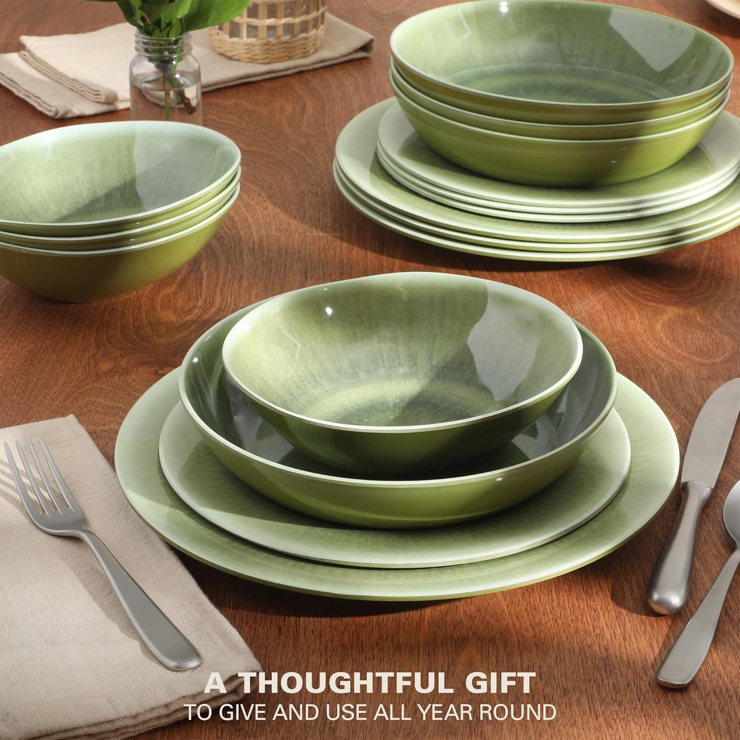 Gibson Home Casper Court 16-Piece Melamine Dinnerware Set – Green Reactive Glaze Look Plates and Bowls, Service for 4 – Top Rack Dishwasher Safe Everyday Dining Set