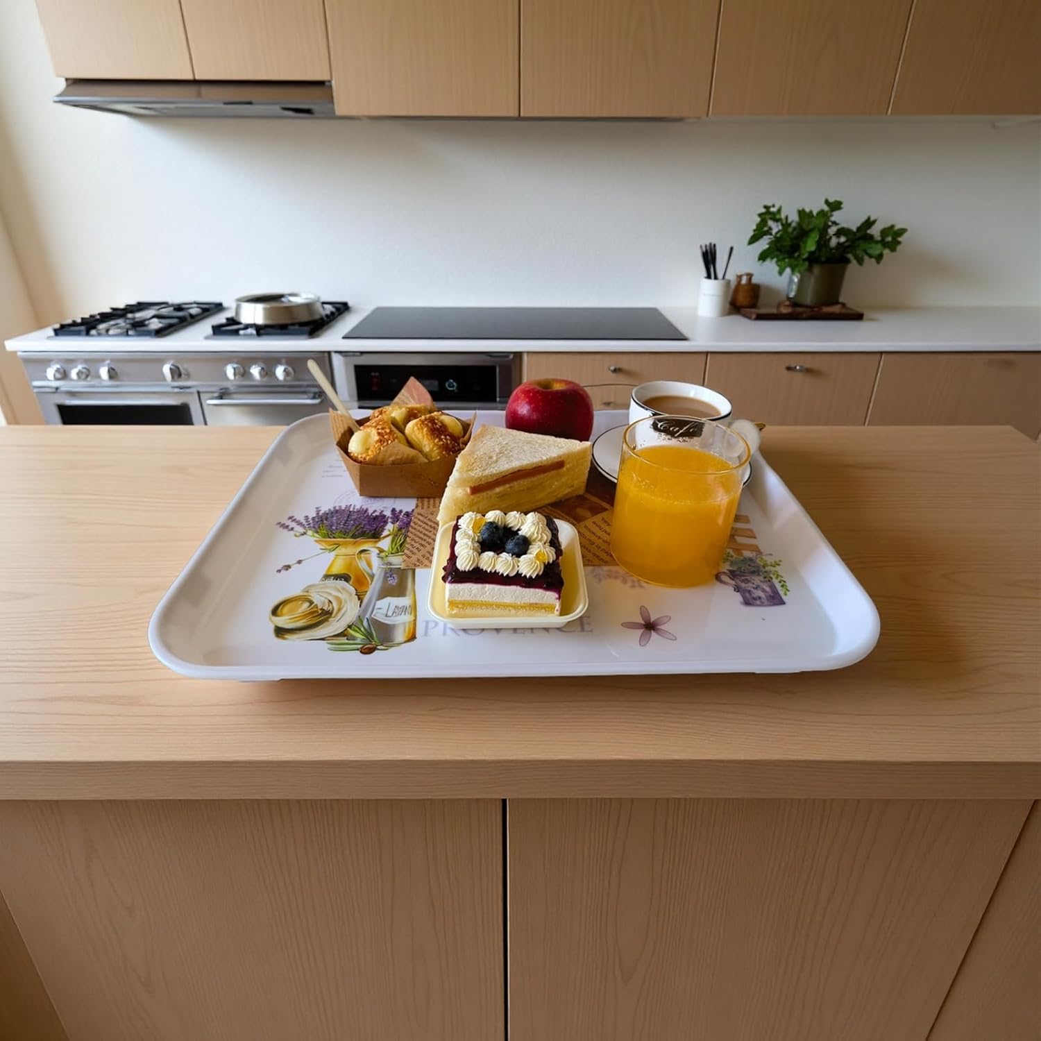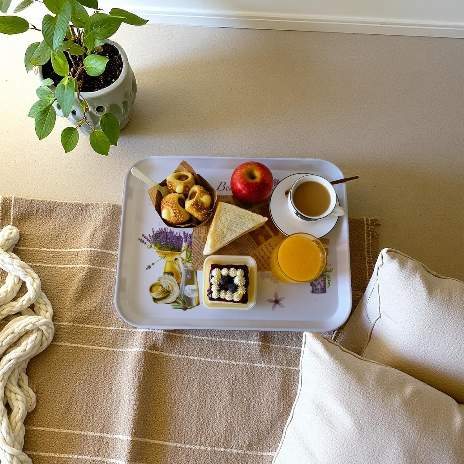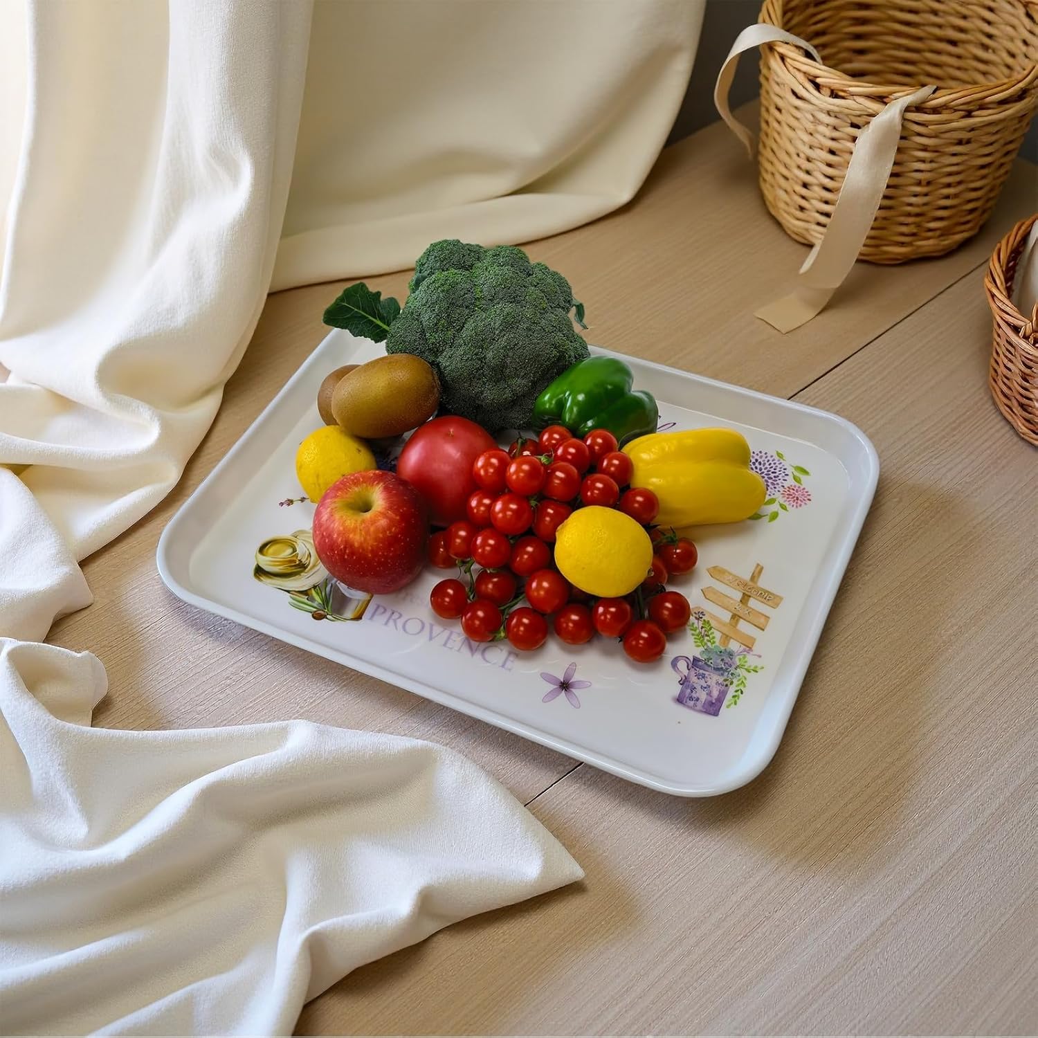 • PACKAGE: Package includes 2 packs of melamine trays with same floral printing. Each rectangle serving tray measures approx. 17" L x 13" W x 1" H (43.1x33.5x2.6cm). Perfect size to be used as bed, vanity trays or TV, lap trays for eating.