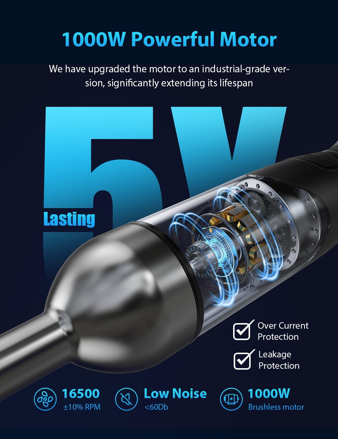 • POWERFUL PERFORMANCE: The 2025 Handheld Immersion Blender features a pure copper brushless motor, providing stable power. This advanced motor is engineered to last over five times longer than standard motors, ensuring dependable performance for years. We stand behind its durability with a 5-year warranty for your peace of mind.