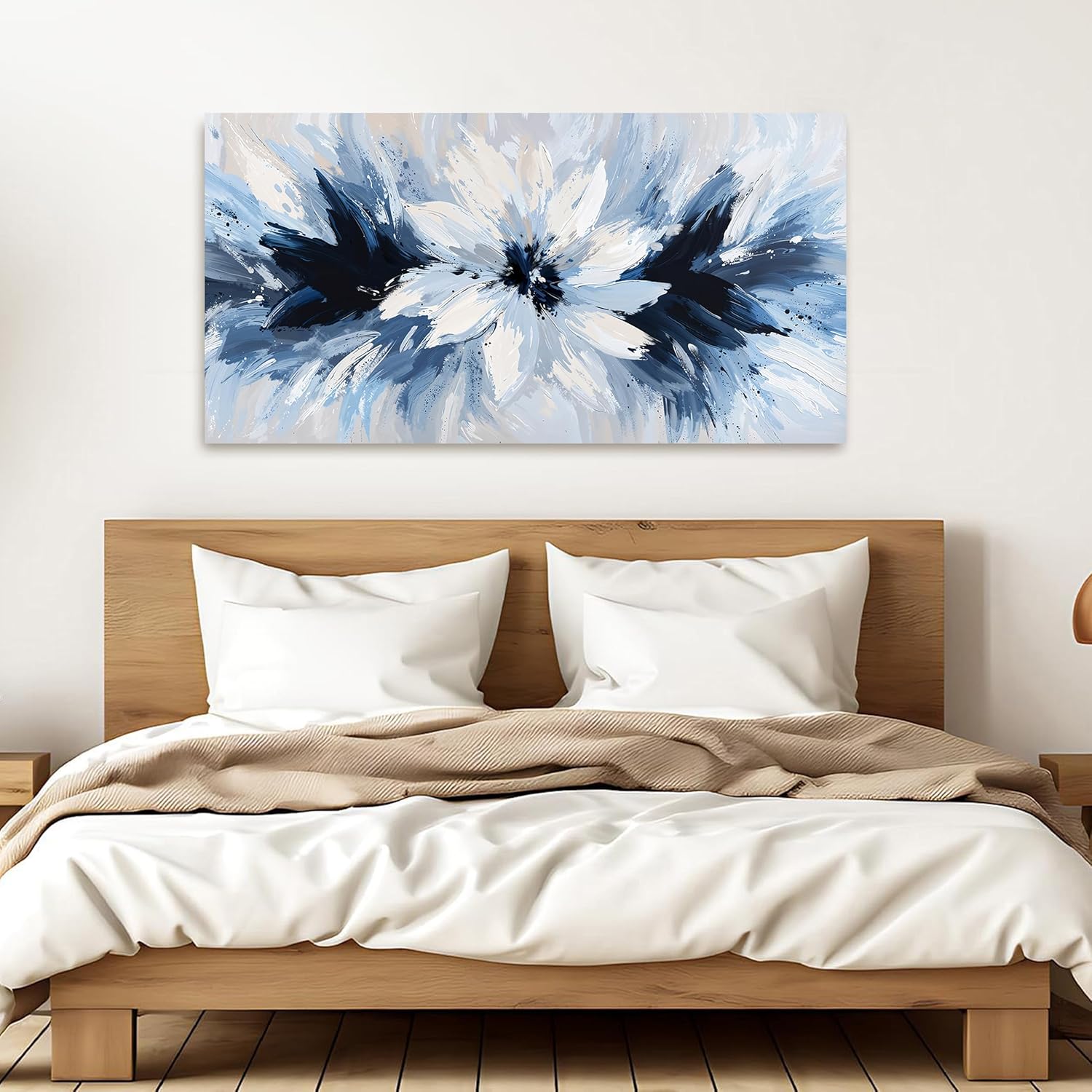 Canvas Wall Art Decor Wall Art Pictures For Living Room White Flower Wall Art Prints Modern Blue Wall Art Decorations 20" X 40" Abstract Canvas Art Wall Decor Artwork for Walls Bedroom Office Decor