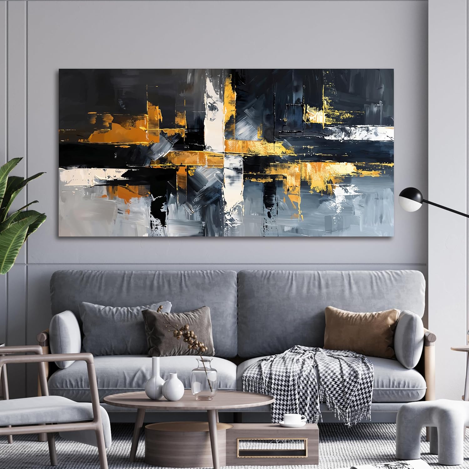 Large Canvas Wall Art Decor Oversized Gold Wall Art for Living Room Black and White Wall Art Prints Artwork for Walls Modern Abstract Art Abstract Canvas Art Wall Decor Bedroom Office Decor 29" X 58"
